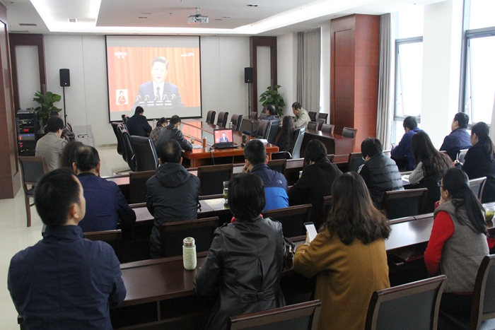 2017年10月18日上午9时,中国共产党第十九次全国代表大会在北京人民大会堂隆重召开,习近平总书记代表十八届中央委员会向大会作报告。根据省局《关于认真组织收听收看习近平总书记在中国共产党第十九次全国代表大会上的报告的通知》要求,院领导高度重视,及时进行了安排和提出要求,并专门下发通知进行了具体部署。上午8时40分,东区检测基地领导班子成员和各部门中层副职以上党员干部在五楼第一会议室集中收看了十九大报告现场直播,东明路院建材检验中心、珠宝检验中心集中在二楼餐厅组织了收看,各部门其他职工、个别出差抽样人员、出差途中人员也分别以不同形式组织进行了收看。各部门在收看后,按照院的要求及时报告了收看情况,除个别业务值班外,基本实现了收看十九大报告人员全覆盖,保证了广大党员干部职工第一时间收看了习近平所作的报告,充分体现了广大干部职工高度的政治意识、大局意识、核心意识、看齐意识,为下一步全面系统的学习贯彻十九大精神奠定了基础。为迎接十九大的胜利召开,院还以多种形式加强了宣传,分别在各楼层显示了迎接十九大的文图标语,在一楼组织进行了以“平安.瞬间”为主题的书画摄影展览,为十九大召开营造了良好的环境氛围。(下图为收看现场)