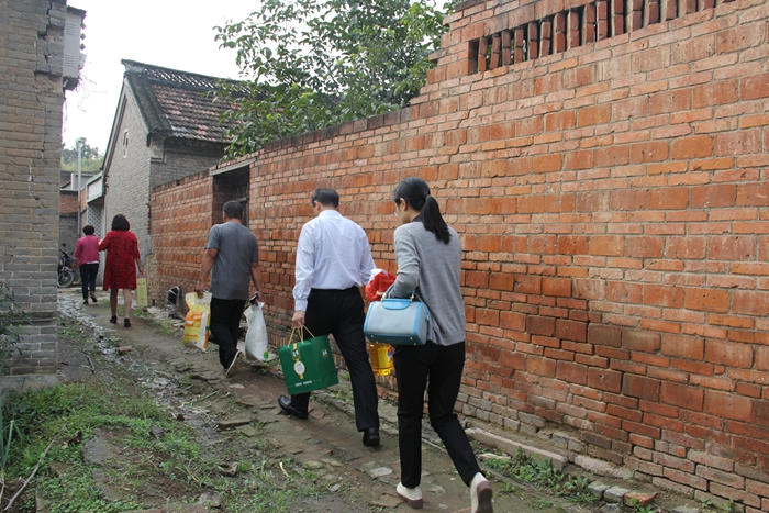 9月28日, 国庆节、中秋节双节即将来临之际,工会主席李存英、副主席肖征带队前往来集镇小学开展帮扶慰问活动,走访慰问帮扶学校的三名贫困儿童及家庭。