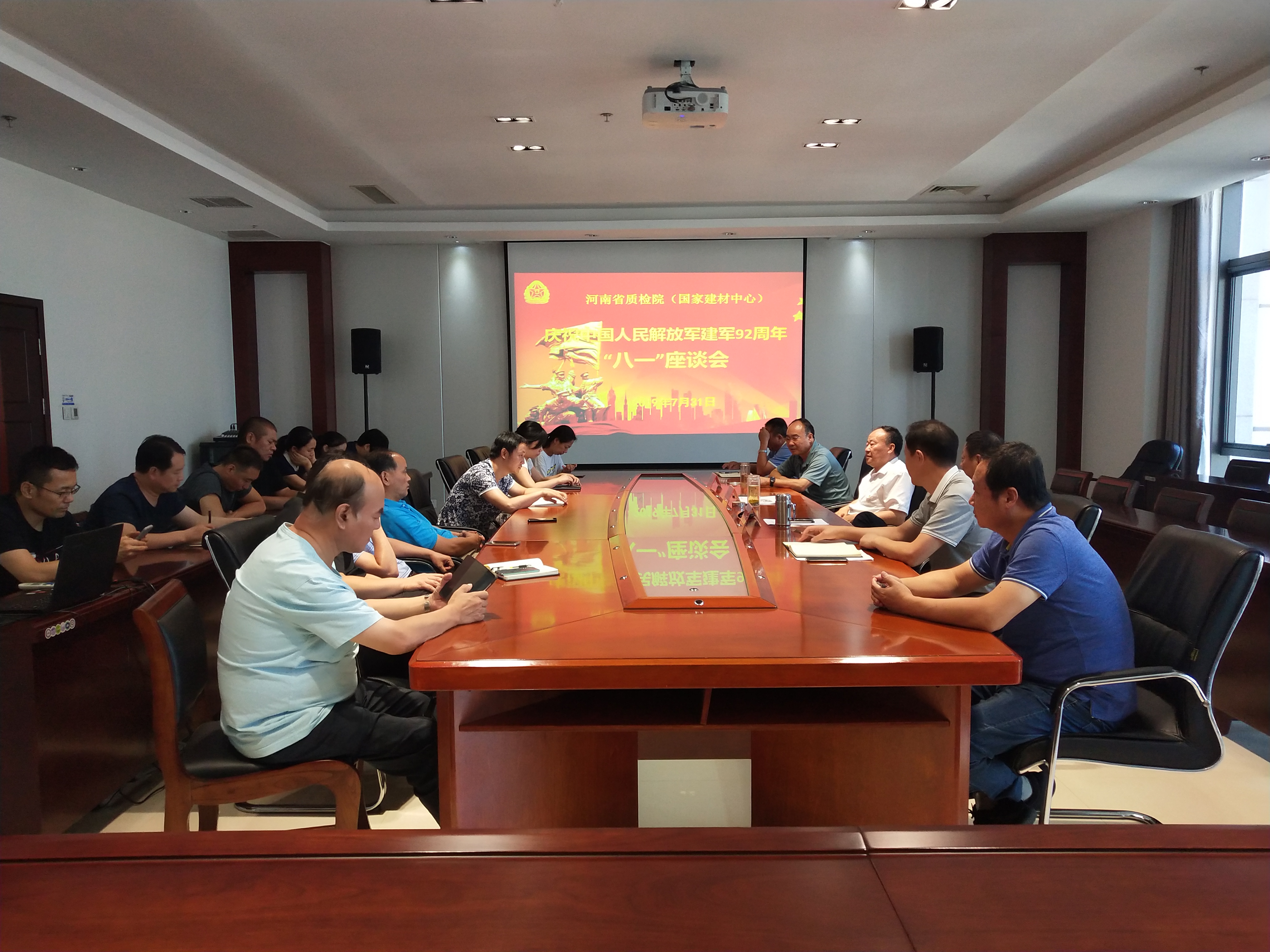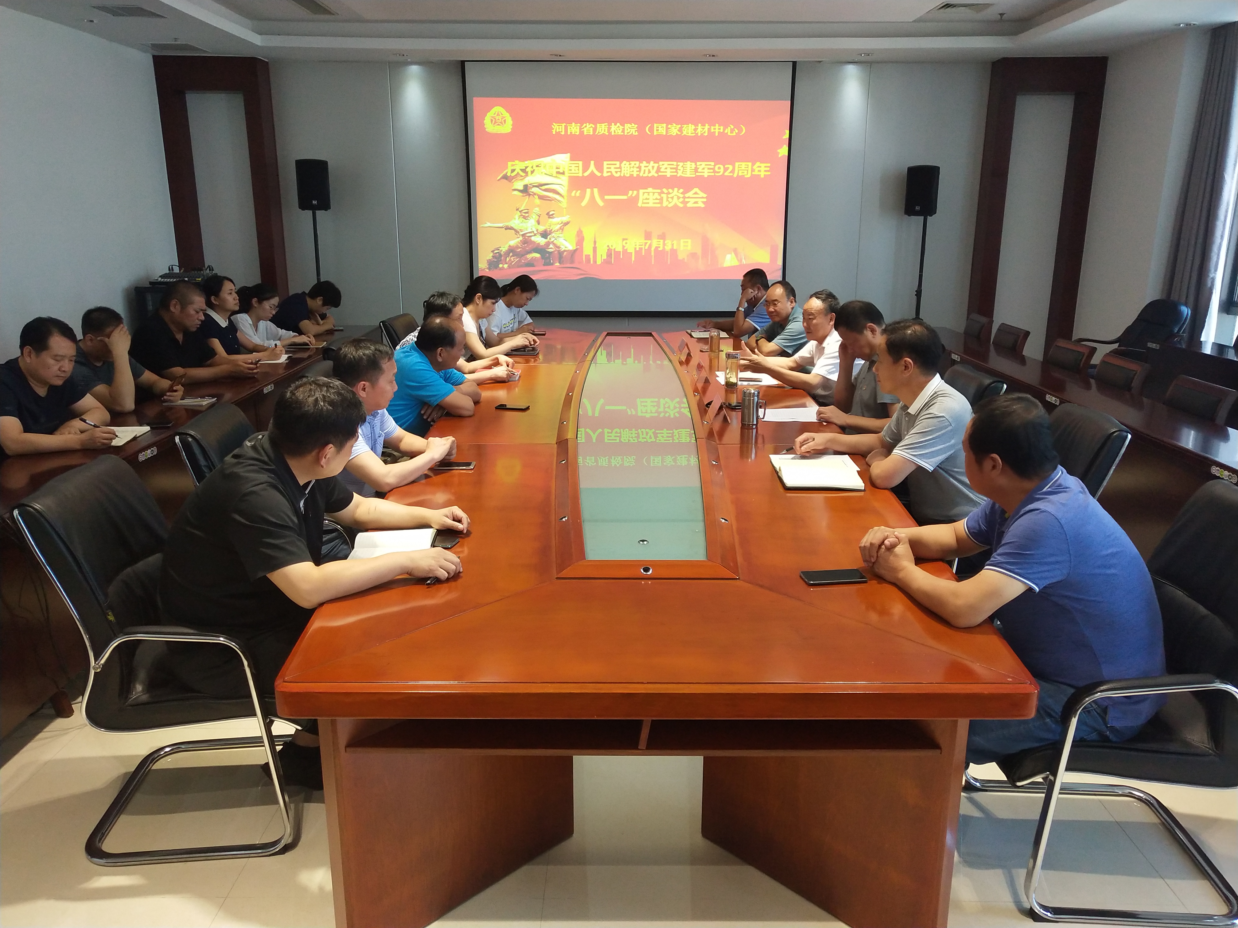 为热烈庆祝中国人民解放军建军92周年,7月31日下午,院在第一会议室组织召开“八一”座谈会。傅小苗院长、杜文功副院长以及在郑的20多名复转军人和现役军人家属参加了座谈会,会议由苏涌书记主持。