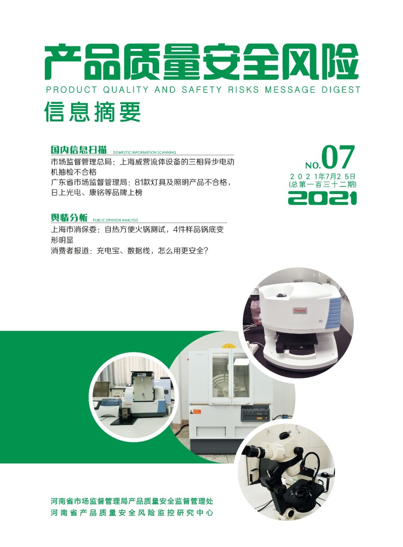 产品质量安全风险信息摘要2021.7.25 发布时间:2021年10月18日 信息来源:河南省产品质量监督检验院