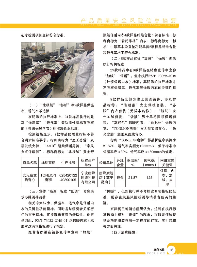 产品质量安全风险信息摘要2022.1.25 发布时间:2022年12月13日 信息来源:河南省产品质量监督检验院