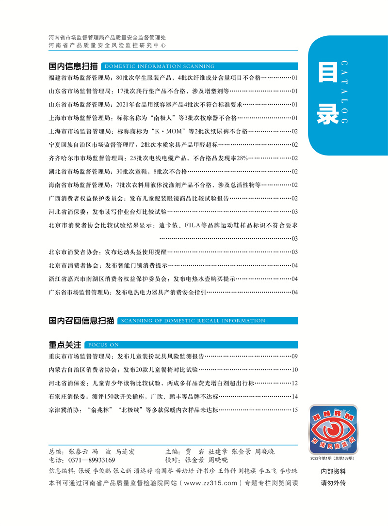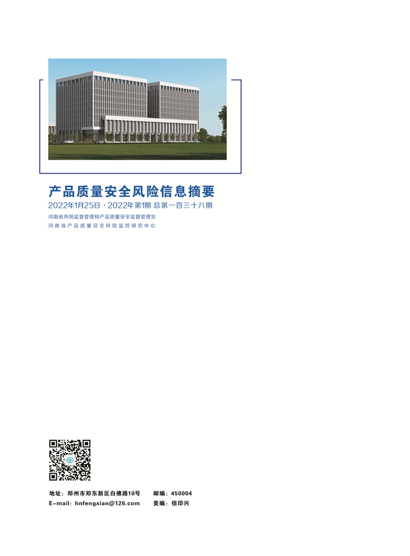 首页-- 风险监测月刊>--产品质量安全风险信息摘要2022.1.25