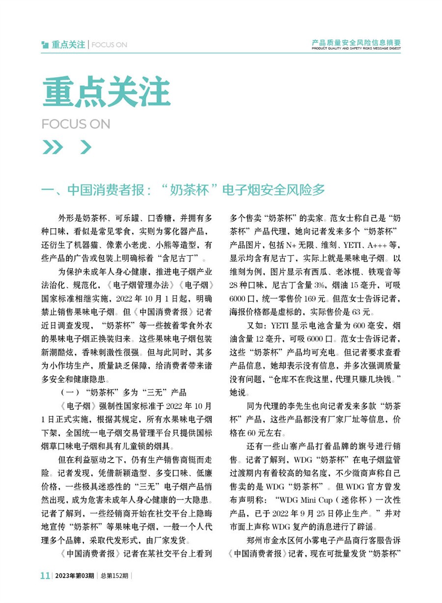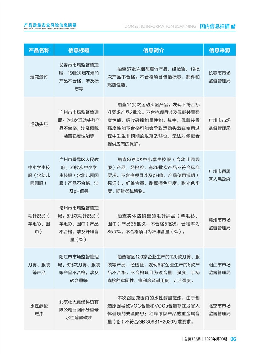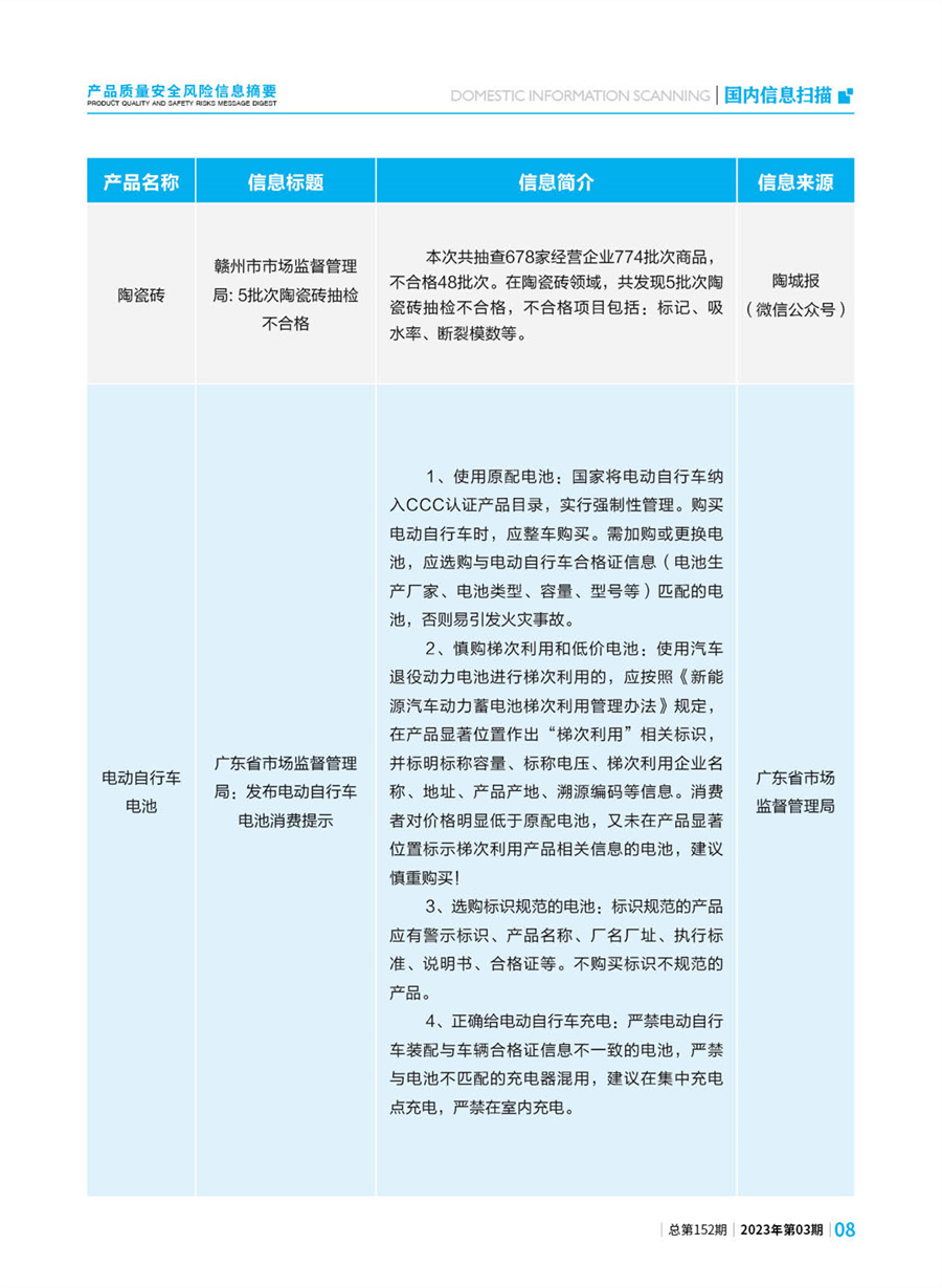 首页-- 风险监测月刊>--产品质量安全风险信息摘要2023.3.25