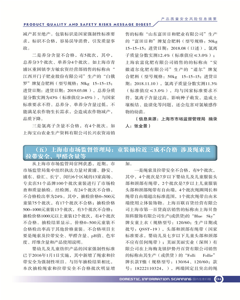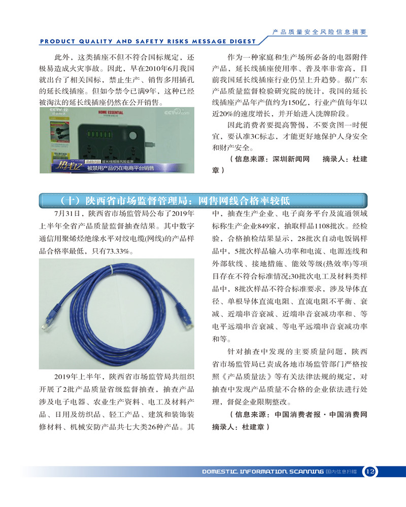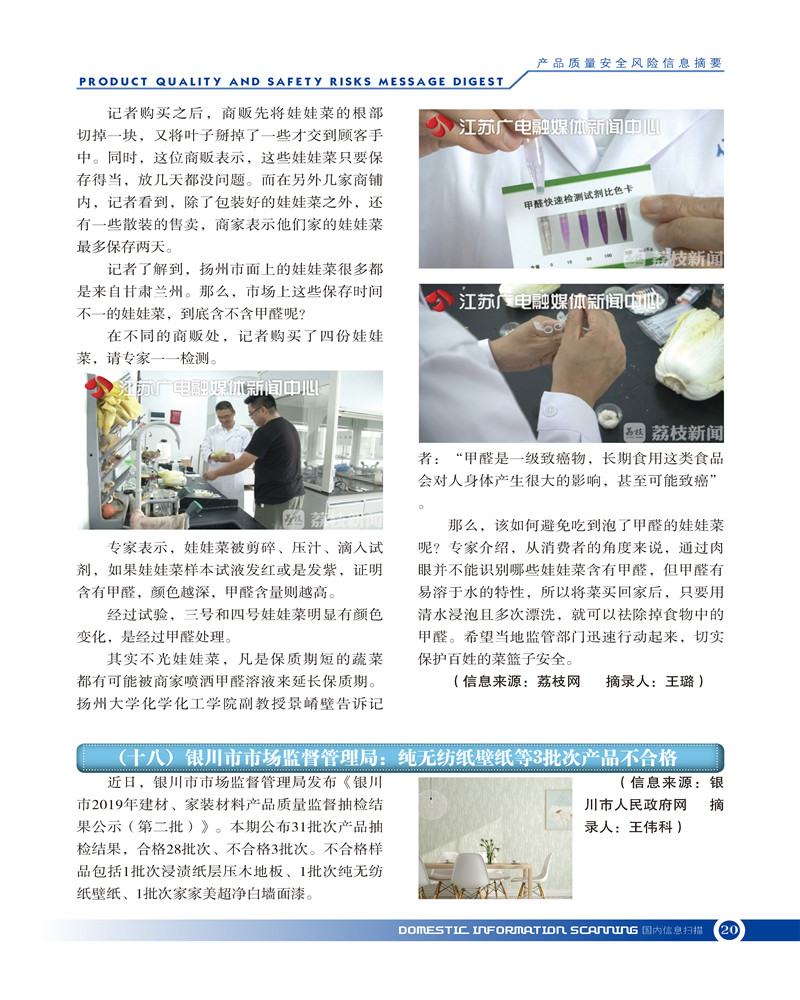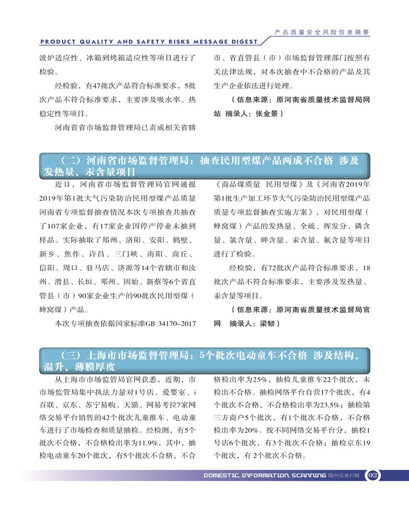 首页-- 风险监测月刊>--产品质量安全风险信息摘要2019.7.25