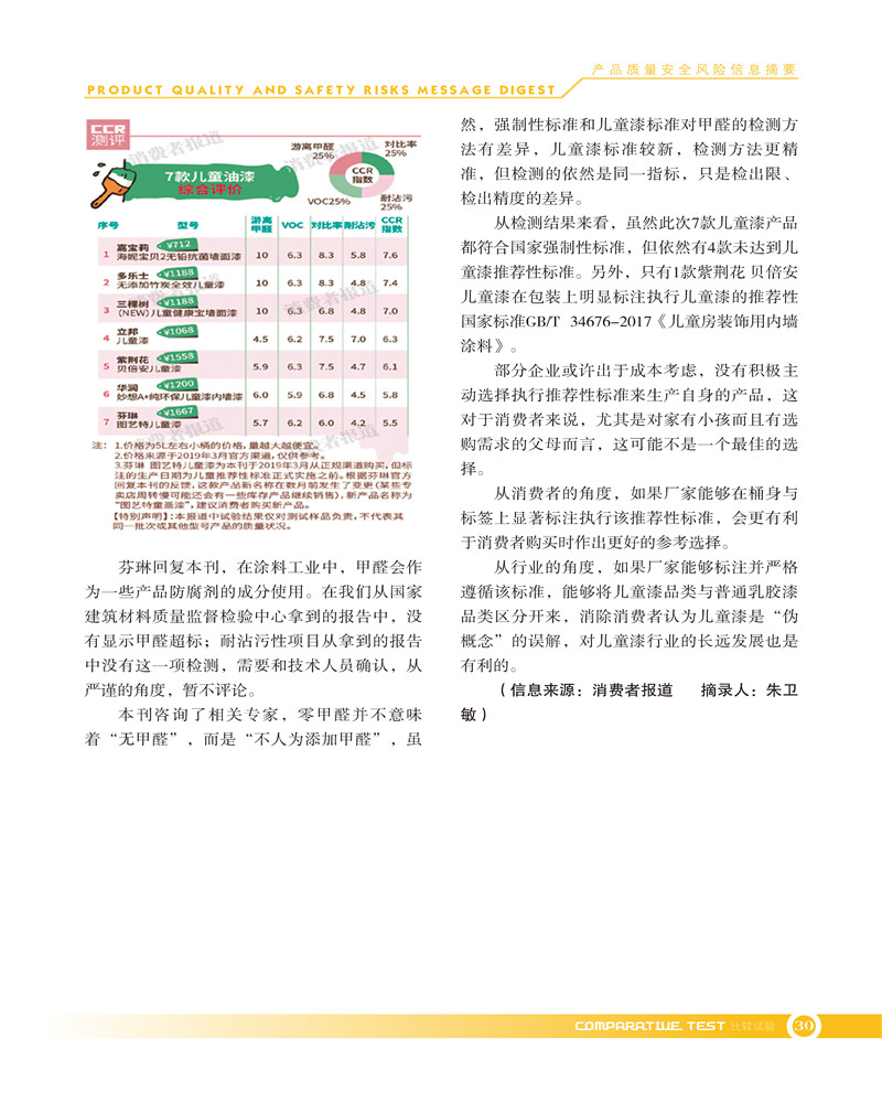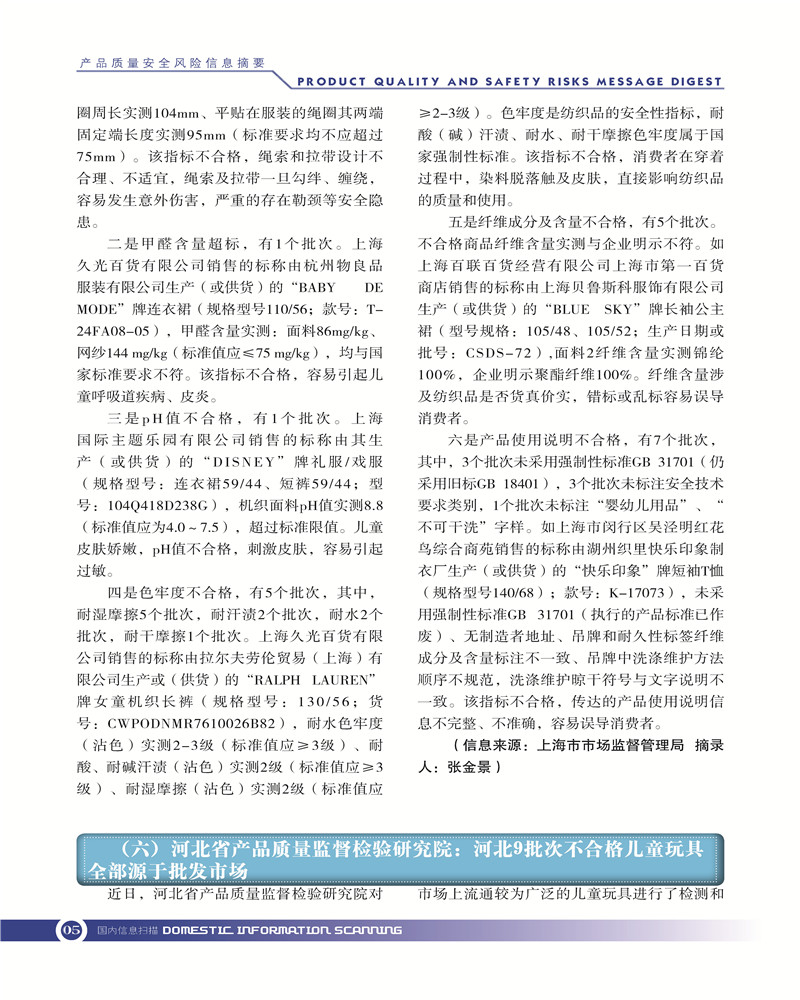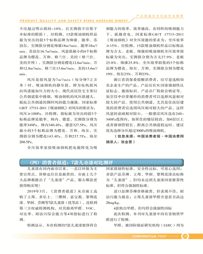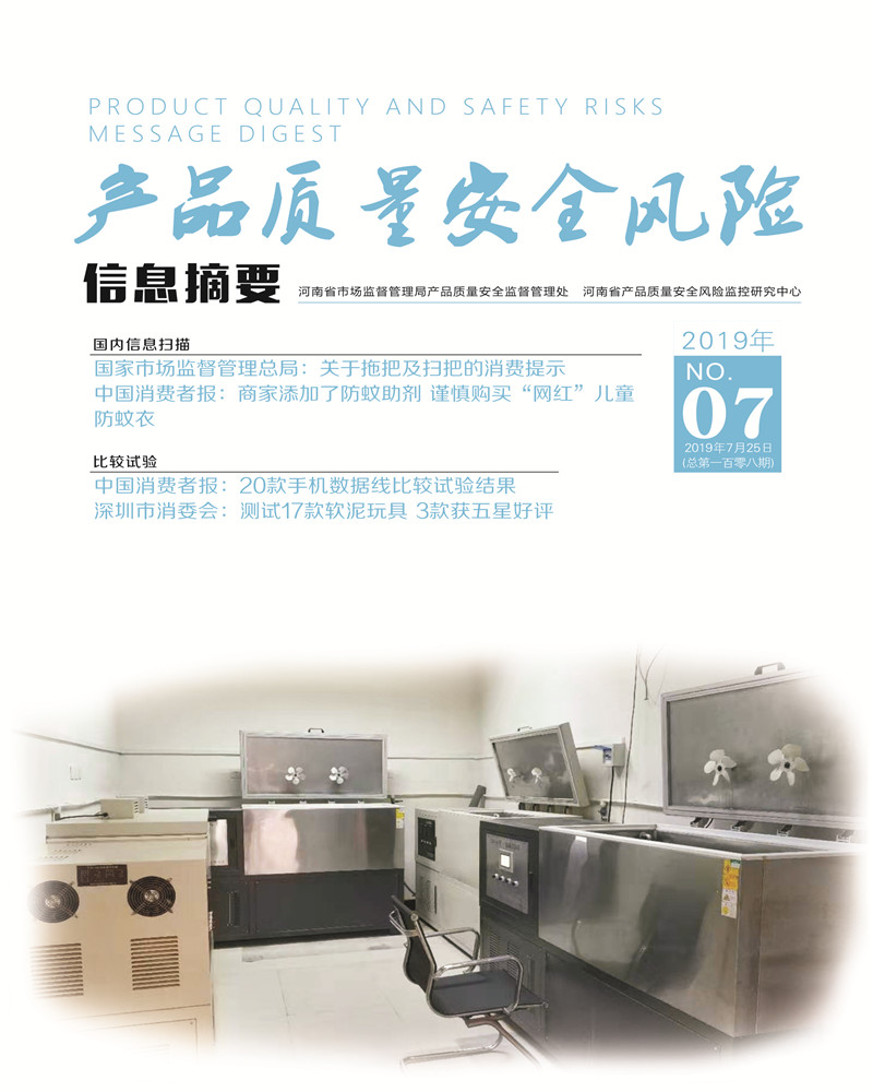 产品质量安全风险信息摘要2019.7.25 发布时间:2019年10月25日 信息来源:河南省产品质量监督检验院