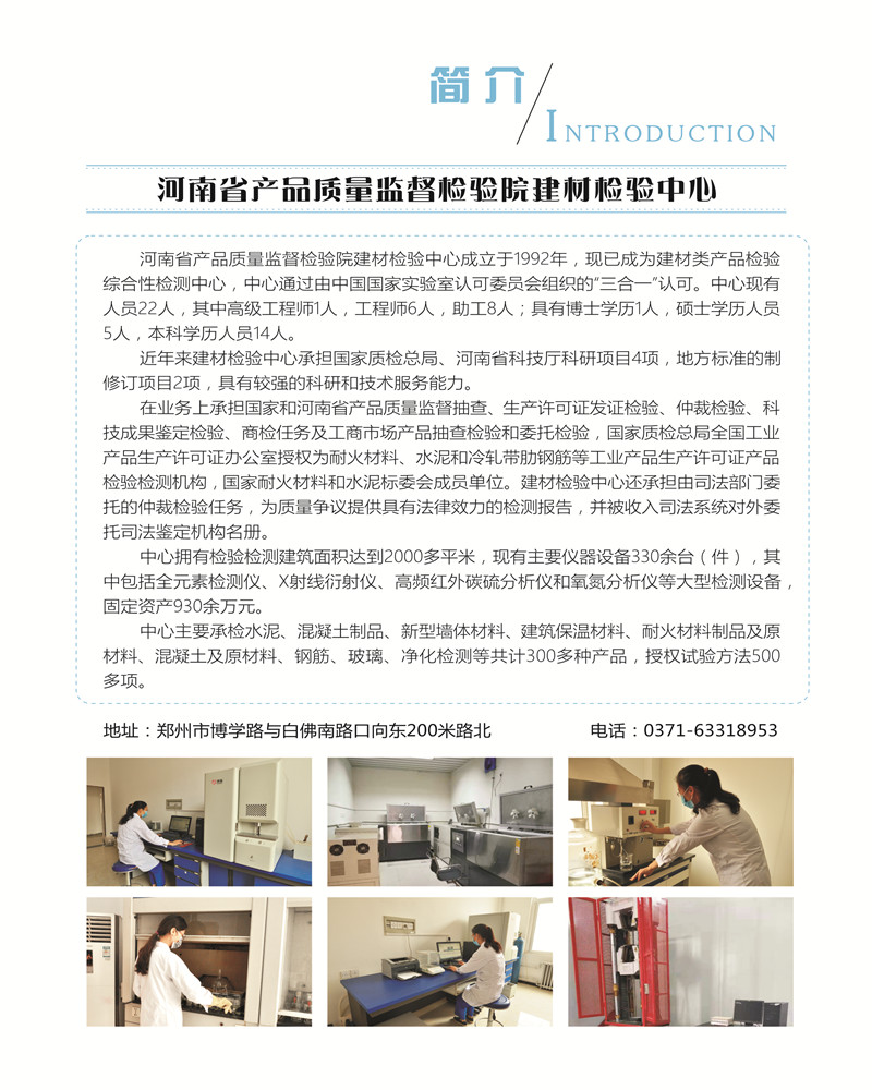 联系电话:博学路园区:石油化工、橡塑:0371-89933179; 涂料、建材:0371-89933178;轻工、机械、石陶:0371-89933187; 食品:0371-89933180;原阳检测家具中心:0373-5800185;东明路园区:电气:0371-63318986;珠宝:0371-63318193;业务大厅:0371-89933175