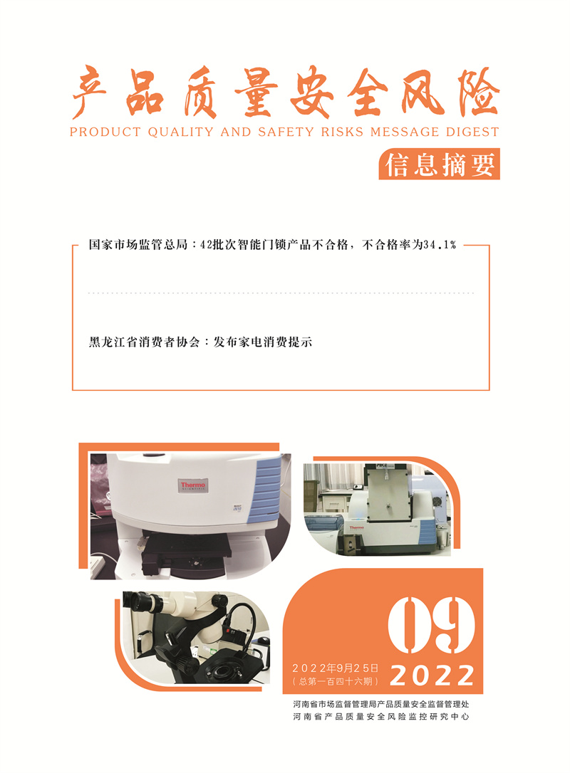 产品质量安全风险信息摘要2022.9.25 发布时间:2022年12月13日 信息来源:河南省产品质量监督检验院