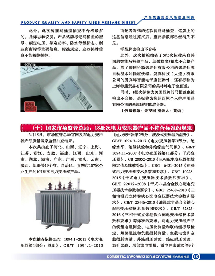 首页-- 风险监测月刊>--产品质量安全风险信息摘要2019.3.25