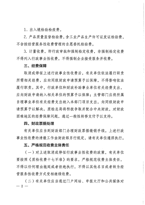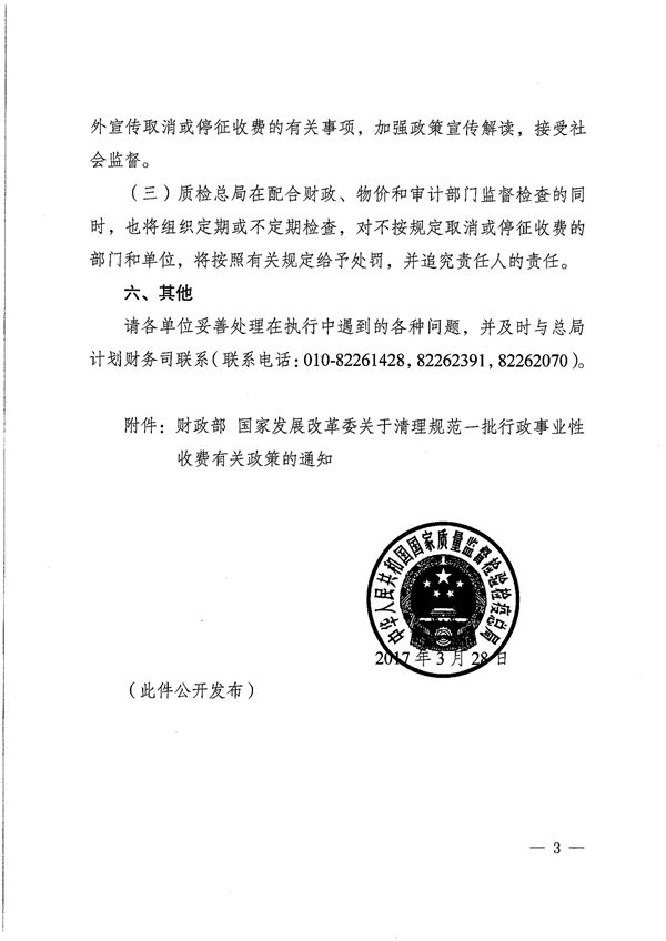 《质检总局关于贯彻落实取消或停征4项行政事业性收费决定的通知》(国质检财函〔2017〕140号) 发布时间:2017年04月12日 信息来源:河南省产品质量监督检验院