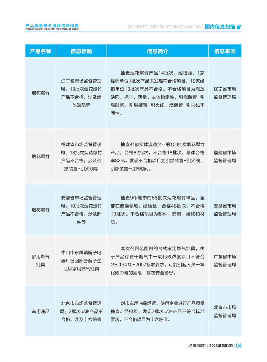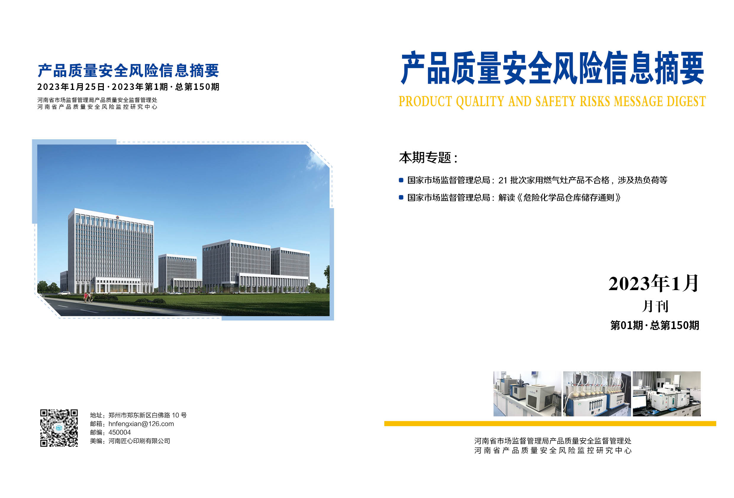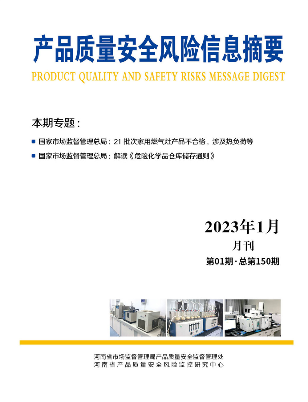产品质量安全风险信息摘要2023.1.25 发布时间:2023年05月30日 信息来源:河南省产品质量检验技术研究院