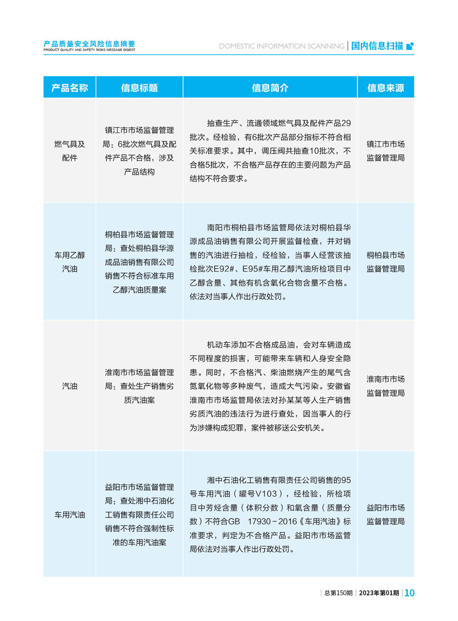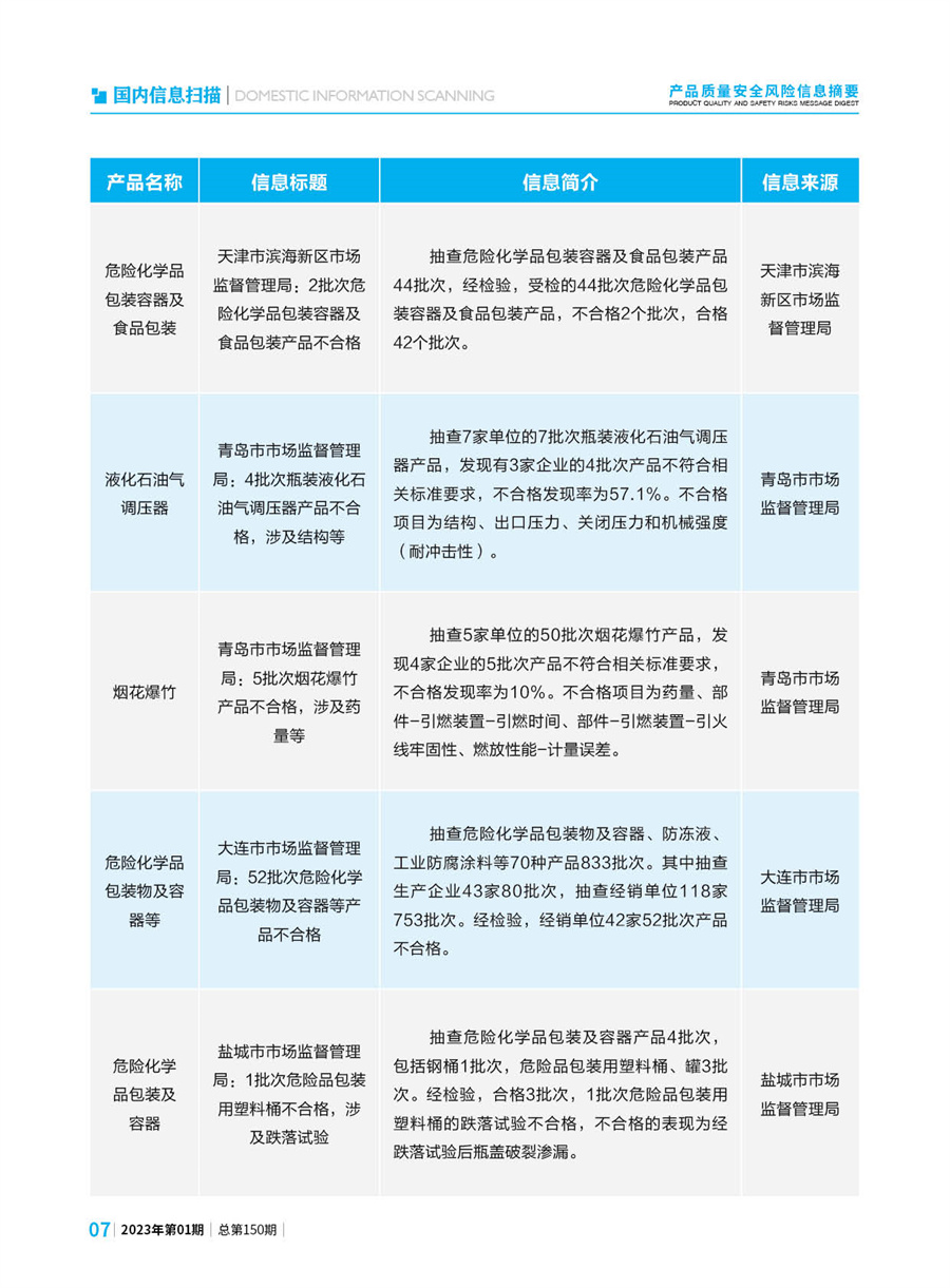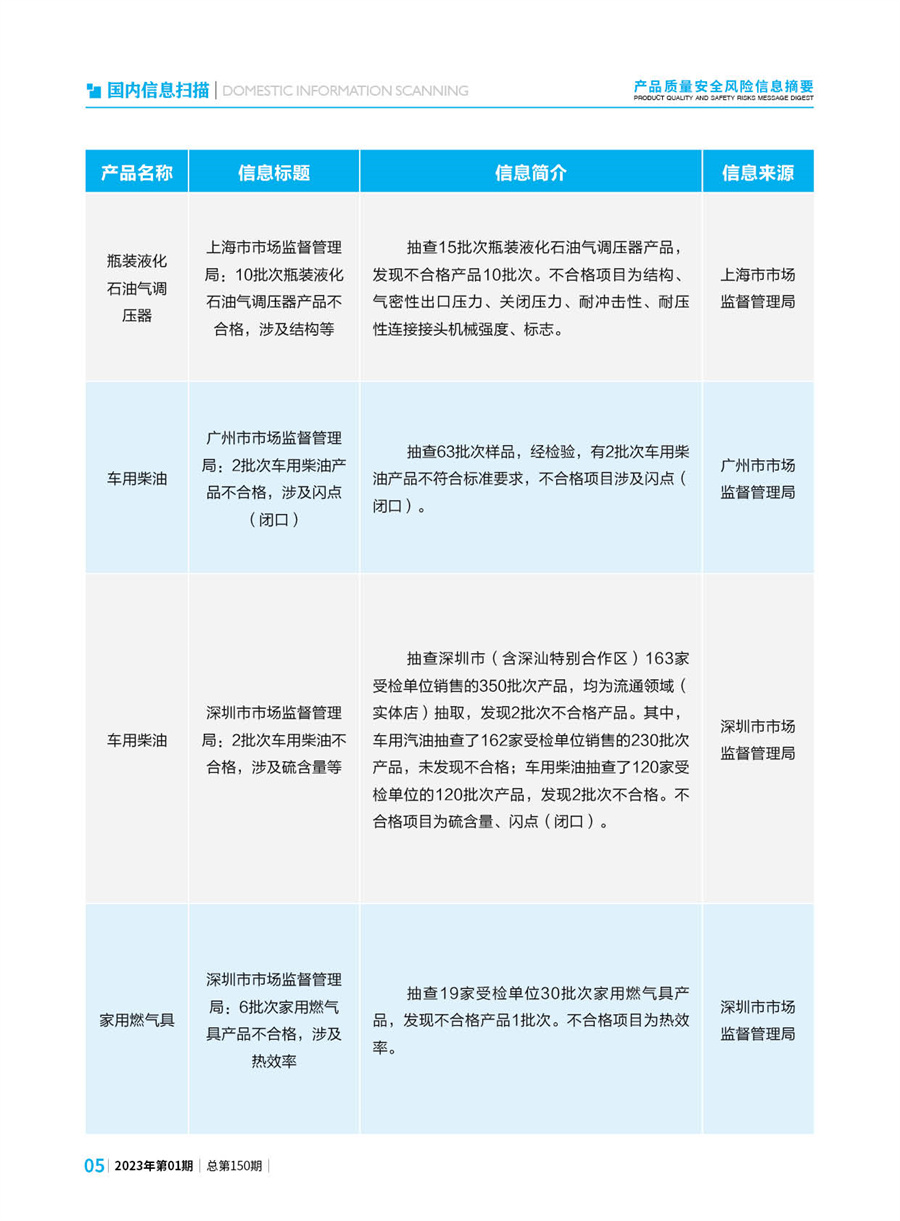产品质量安全风险信息摘要2023.1.25 发布时间:2023年05月30日 信息来源:河南省产品质量检验技术研究院