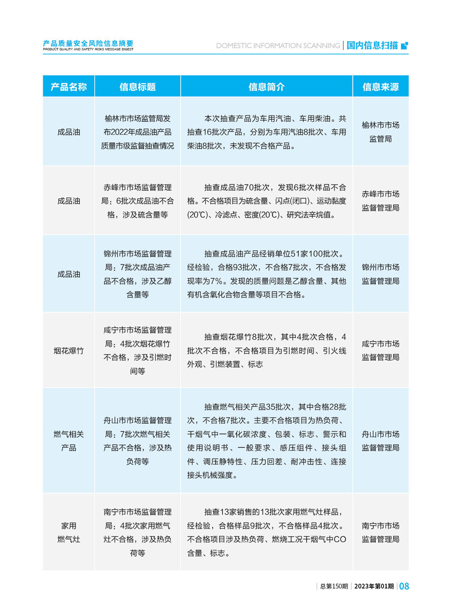 首页-- 风险监测月刊>--产品质量安全风险信息摘要2023.1.25