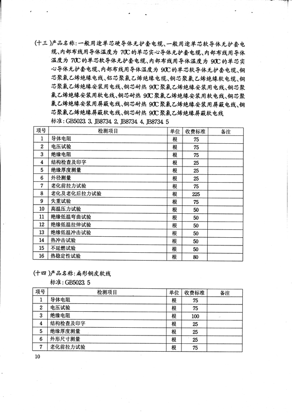 电线电缆CCC收费标准明细