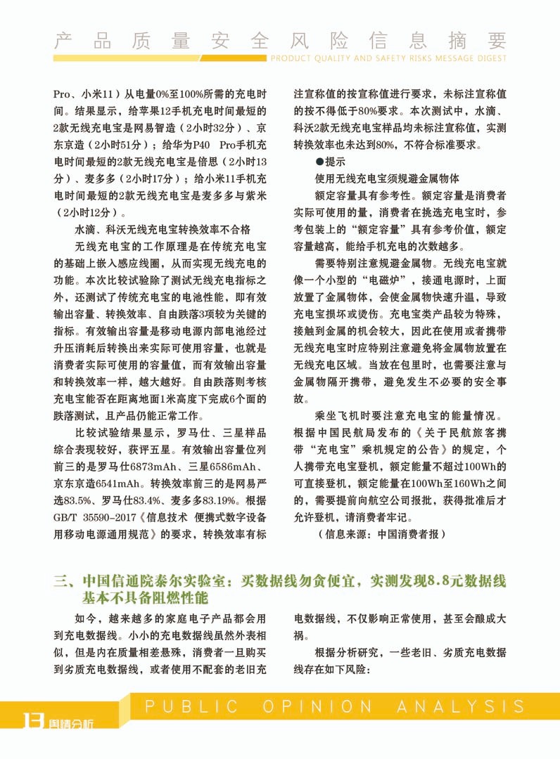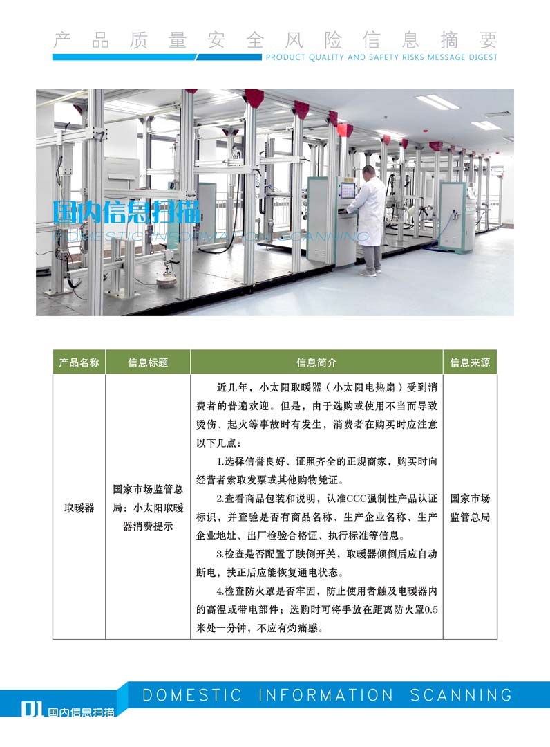产品质量安全风险信息摘要2021.11.25 发布时间:2022年01月13日 信息来源:河南省产品质量监督检验院