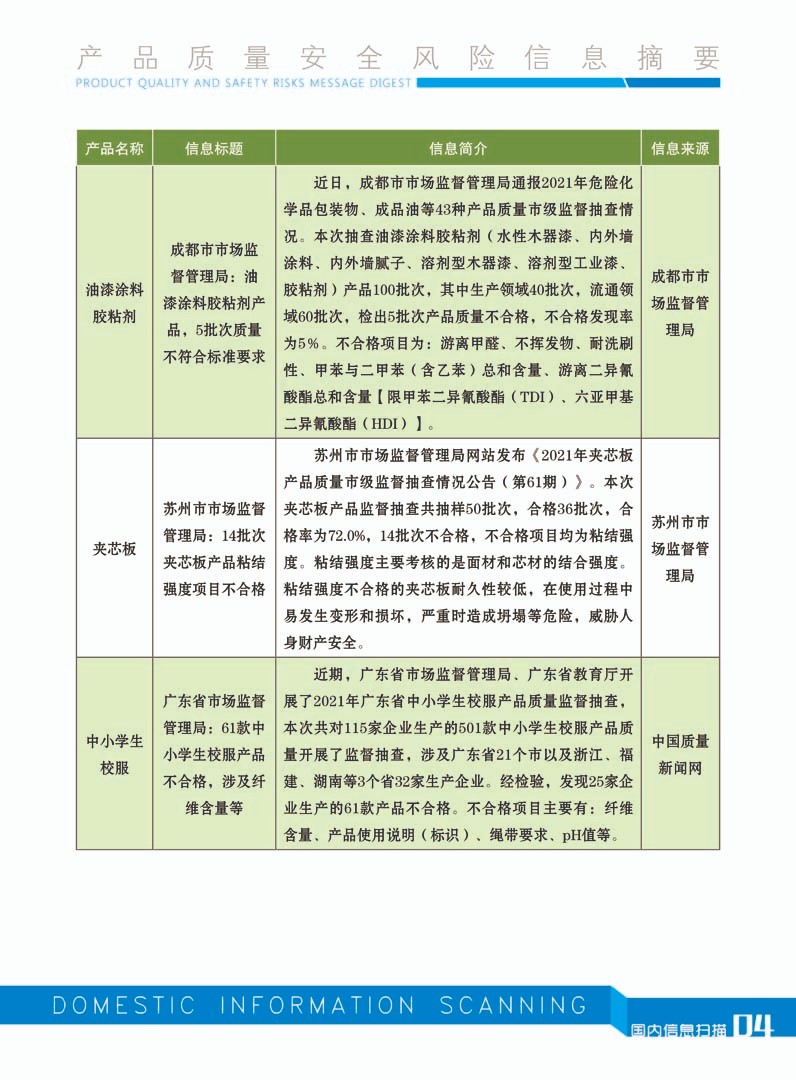 首页-- 风险监测月刊>--产品质量安全风险信息摘要2021.11.25