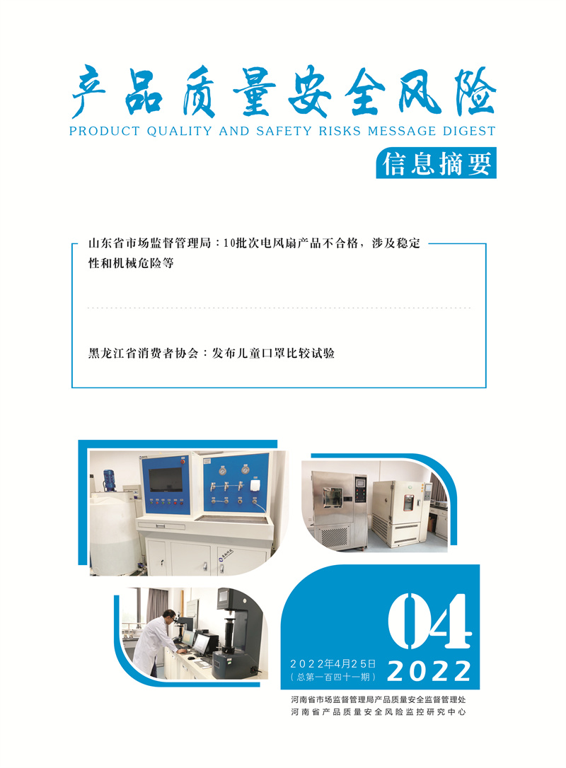 产品质量安全风险信息摘要2022.4.25 发布时间:2022年12月13日 信息来源:河南省产品质量监督检验院