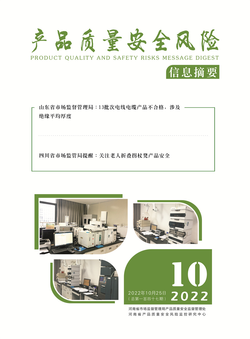 产品质量安全风险信息摘要2022.10.25 发布时间:2022年12月13日 信息来源:河南省产品质量监督检验院
