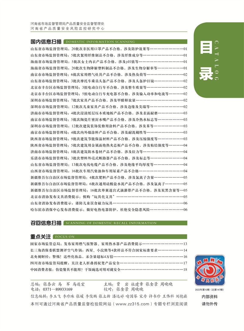 首页-- 风险监测月刊>--产品质量安全风险信息摘要2022.10.25