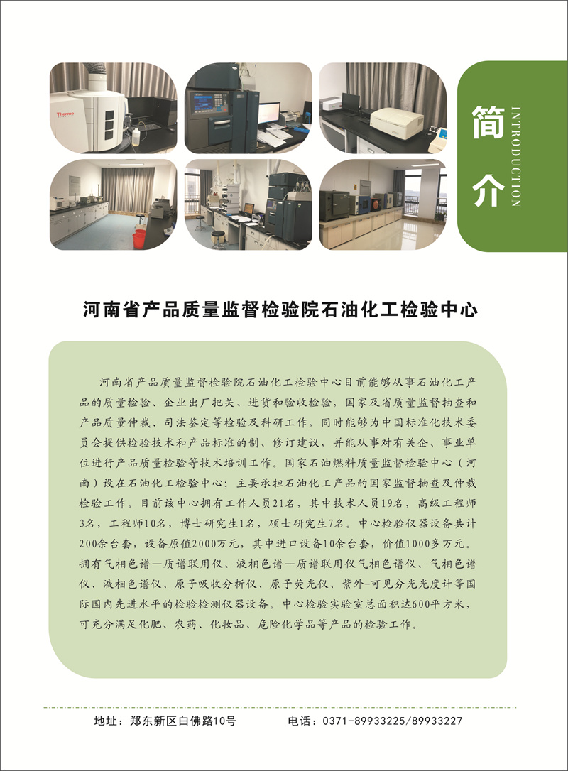 联系电话:博学路园区:石油化工、橡塑:0371-89933179; 涂料、建材:0371-89933178;轻工、机械、石陶:0371-89933187; 食品:0371-89933180;原阳检测家具中心:0373-5800185;东明路园区:电气:0371-63318986;珠宝:0371-63318193;业务大厅:0371-89933175