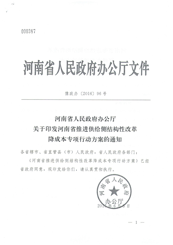 首页-- 收费依据文件>--《关于印发河南省推进供给侧结构性改革降成本专项行动方案的通知》(豫政办〔2016〕96号)