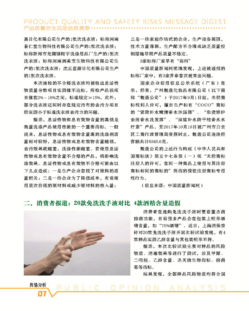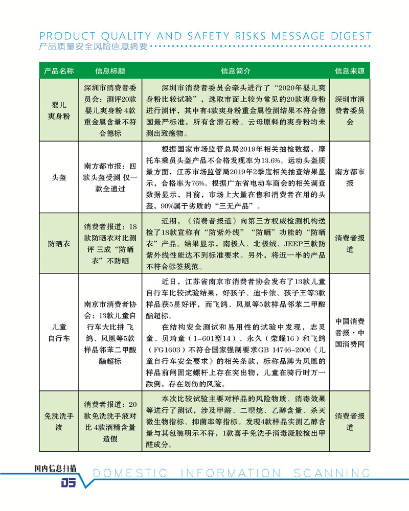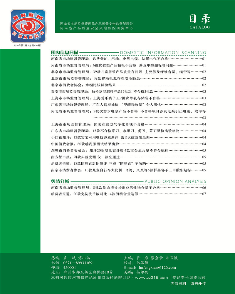首页-- 风险监测月刊>--产品质量安全风险信息摘要2020.7.25