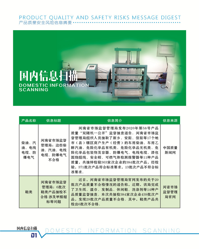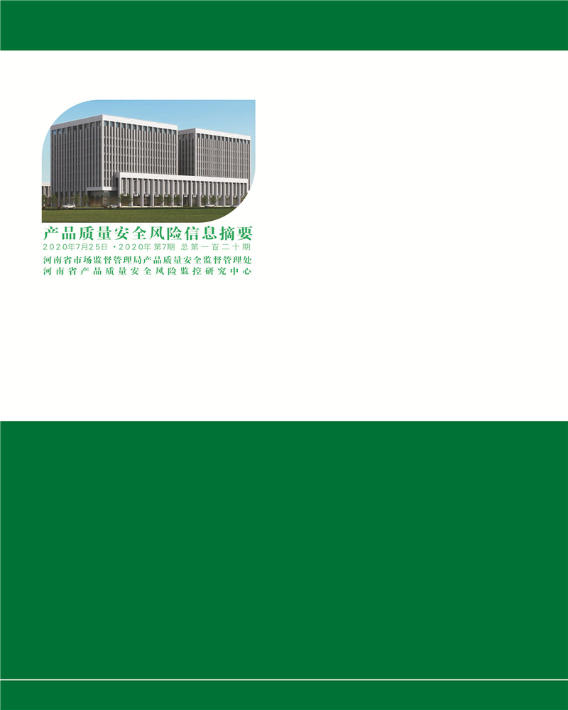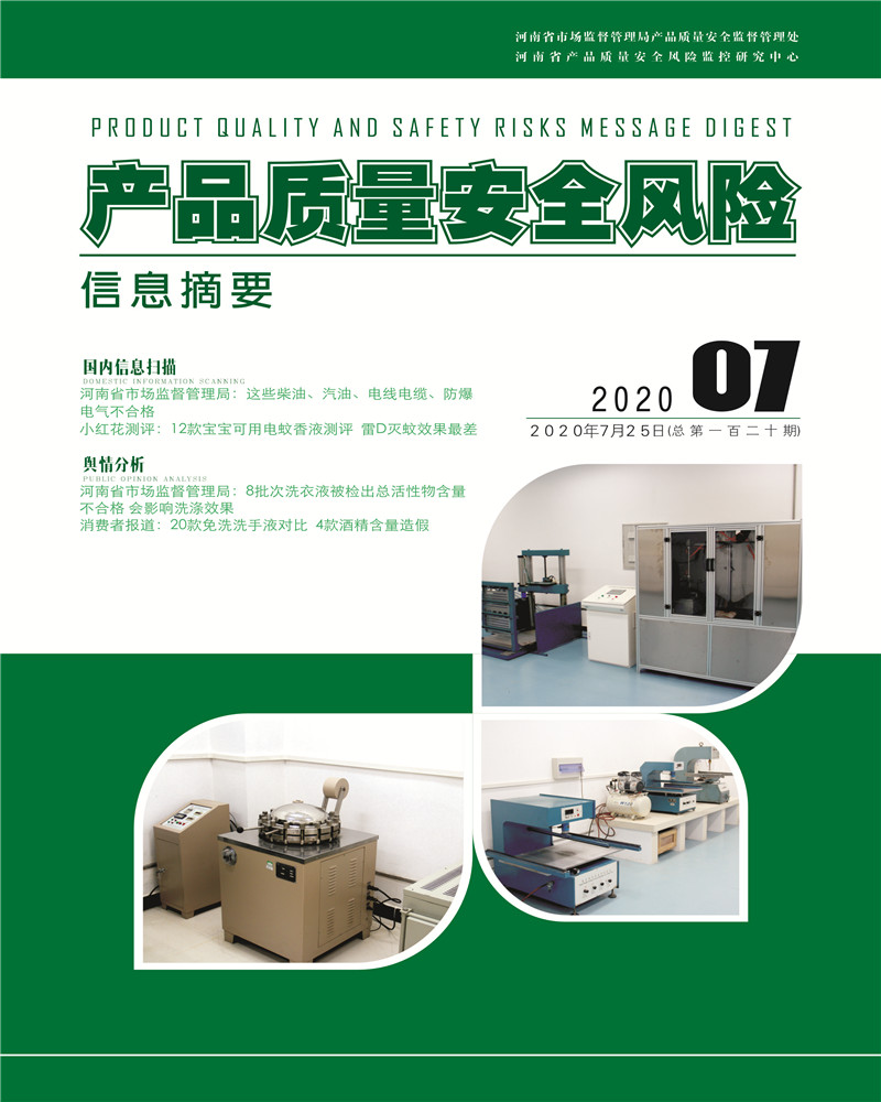 产品质量安全风险信息摘要2020.7.25 发布时间:2020年12月22日 信息来源:河南省产品质量监督检验院