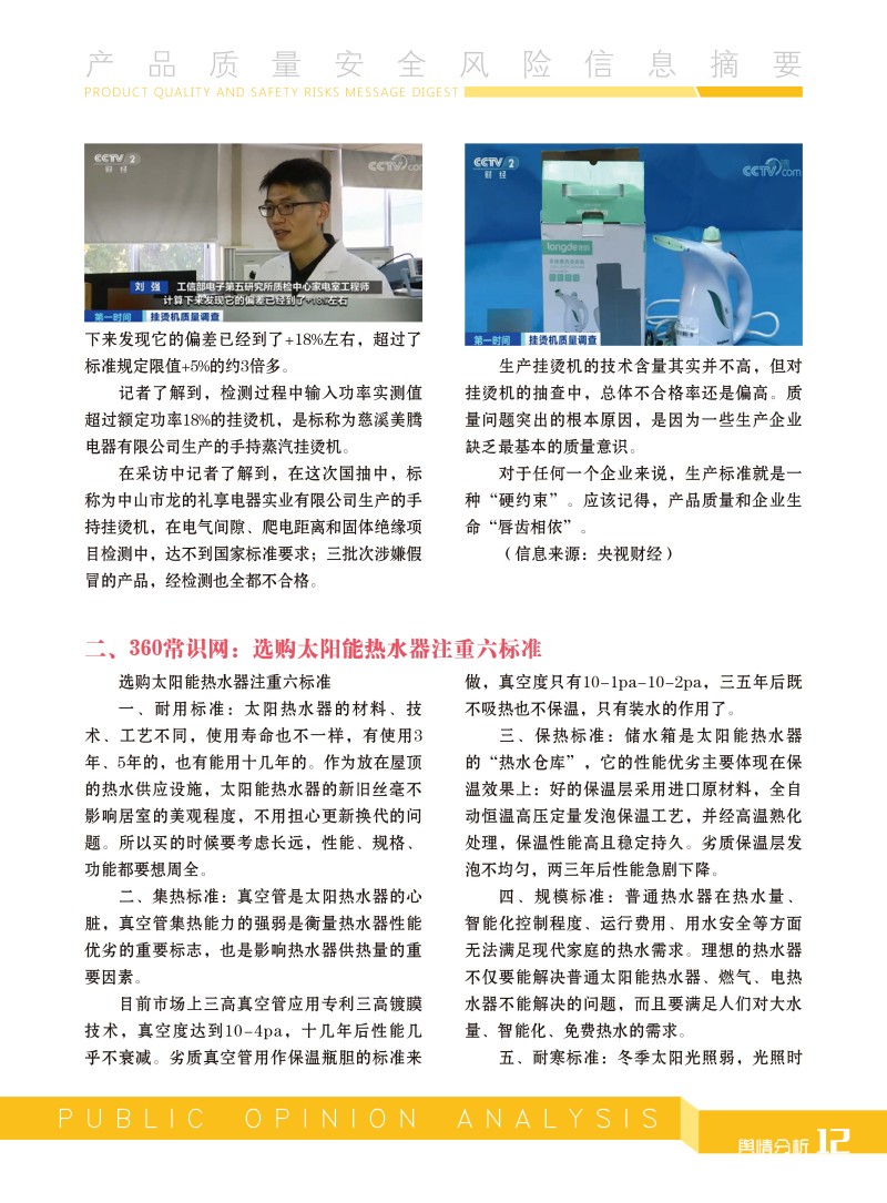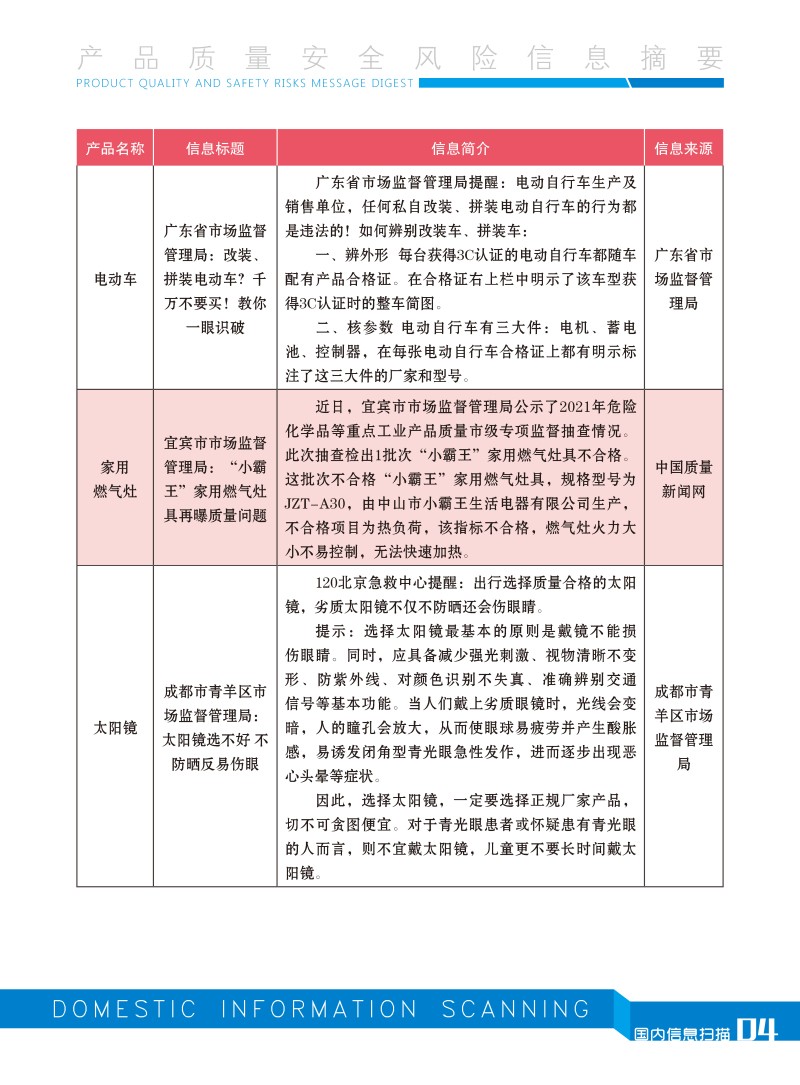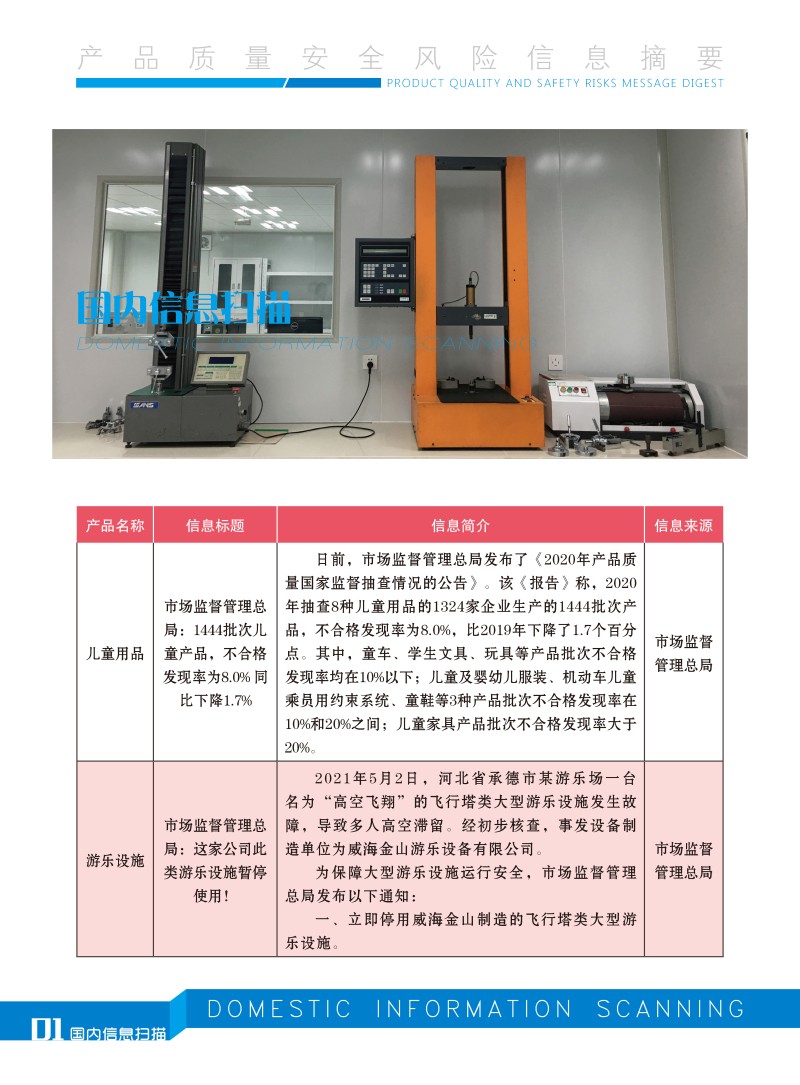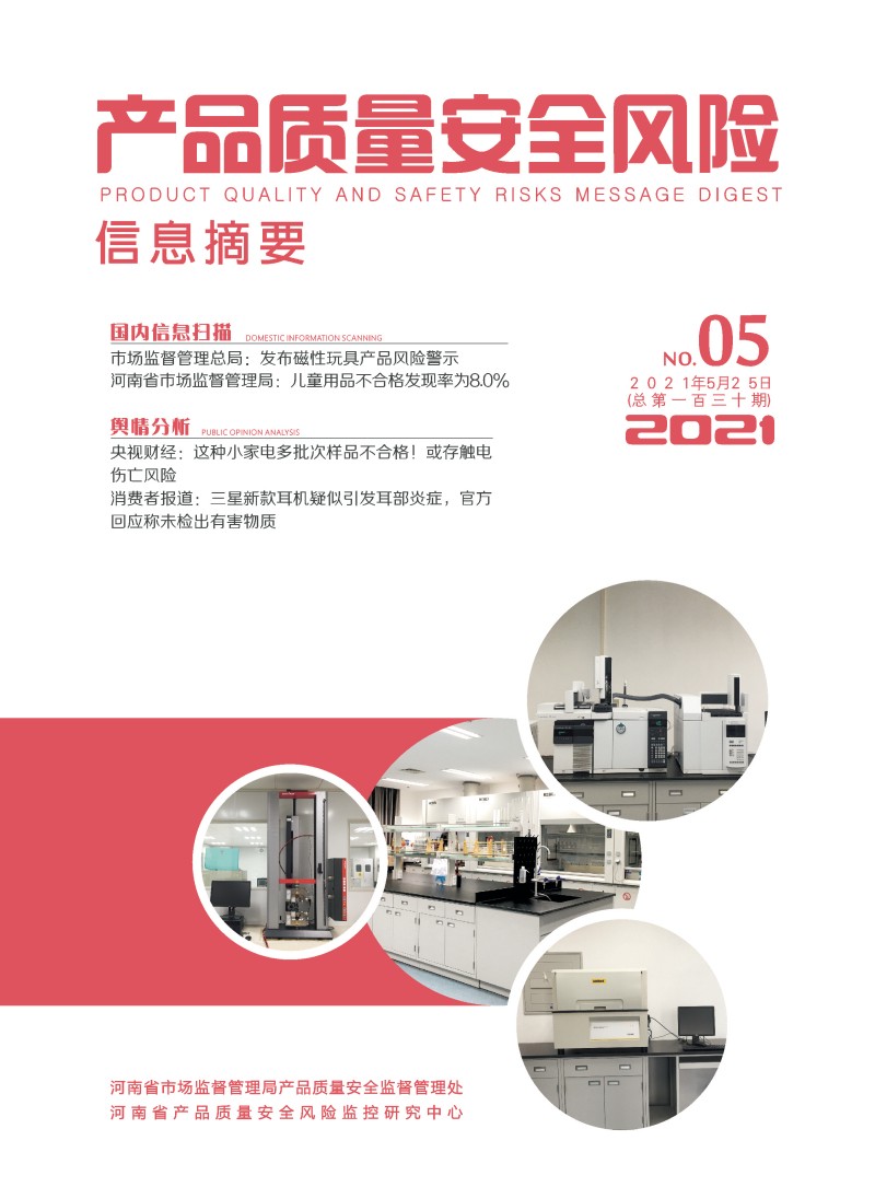 产品质量安全风险信息摘要2021.5.25 发布时间:2021年10月18日 信息来源:河南省产品质量监督检验院