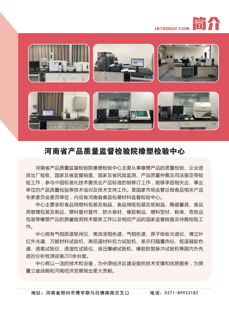联系电话:博学路园区:石油化工、橡塑:0371-89933179; 涂料、建材:0371-89933178;轻工、机械、石陶:0371-89933187; 食品:0371-89933180;原阳检测家具中心:0373-5800185;东明路园区:电气:0371-63318986;珠宝:0371-63318193;业务大厅:0371-89933175