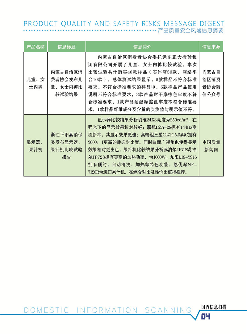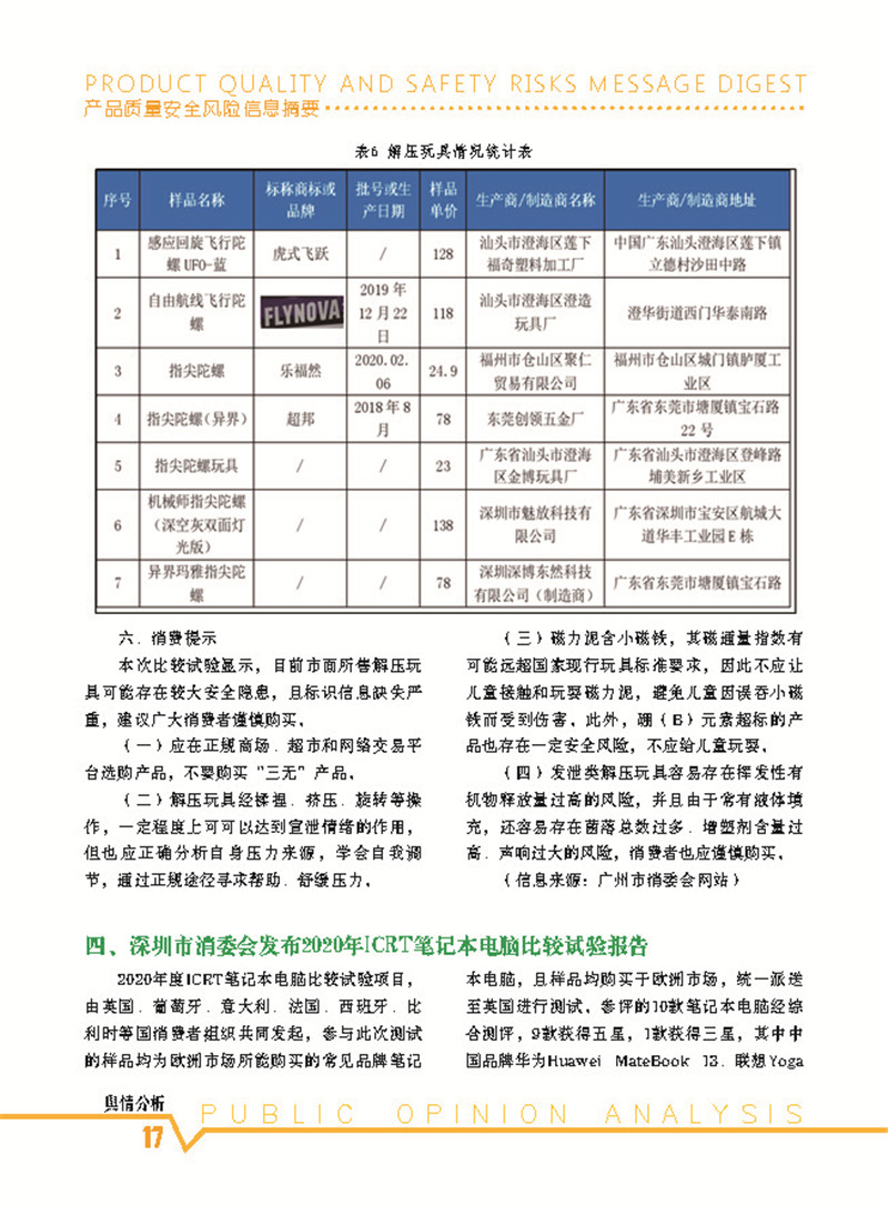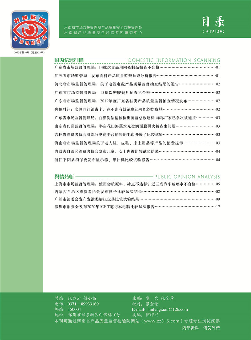 首页-- 风险监测月刊>--产品质量安全风险信息摘要2020.10.25