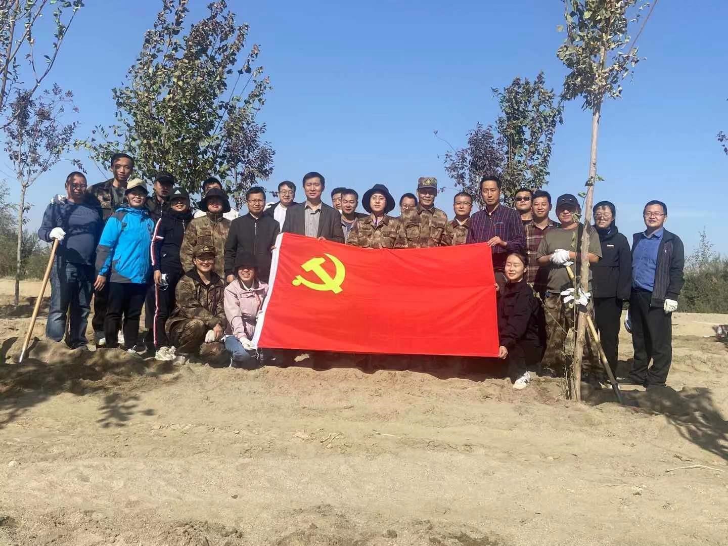 安顿下来第二天,援疆工作组就参加了十三师机关组 织的义务植树活动。由于新疆哈密地区属于内陆干旱地区, 常年水资源贫乏,植被覆盖率偏低,植树成活率很低。为了 确保成活,树坑挖的较深,还要埋的瓷实,防止大风吹倒。 大家齐心协力,圆满完成了上级部门分配的目标任务。
