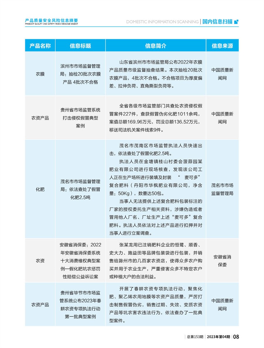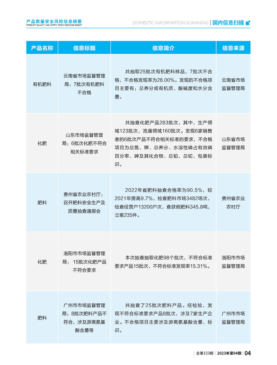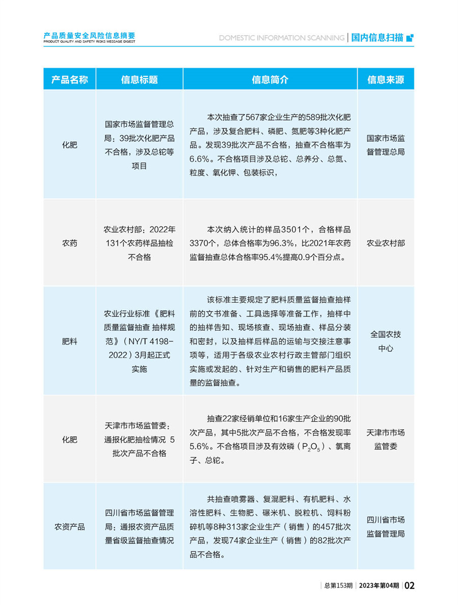 首页-- 风险监测月刊>--产品质量安全风险信息摘要2023.4.25