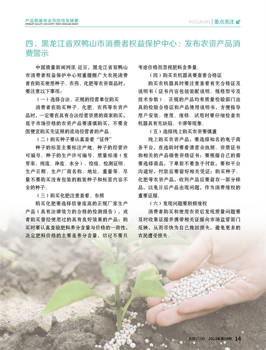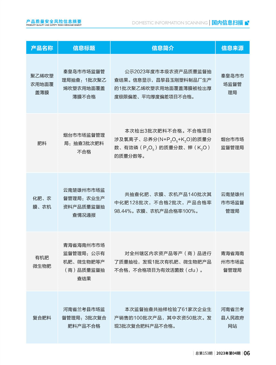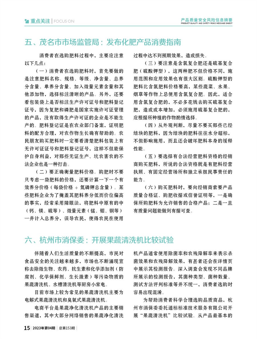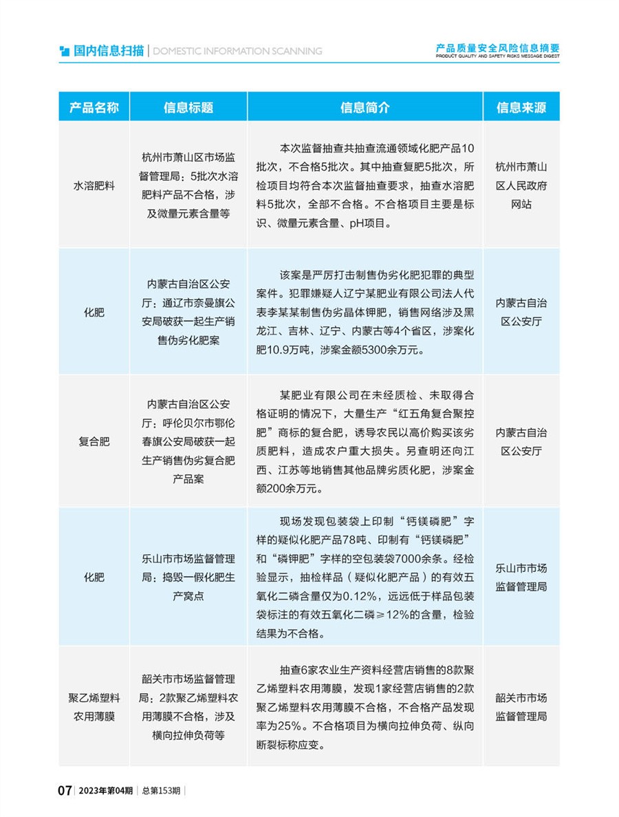 首页-- 风险监测月刊>--产品质量安全风险信息摘要2023.4.25