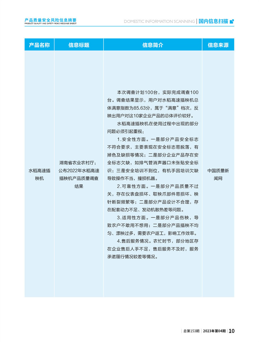 产品质量安全风险信息摘要2023.4.25 发布时间:2023年05月30日 信息来源:河南省产品质量检验技术研究院