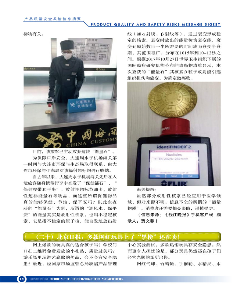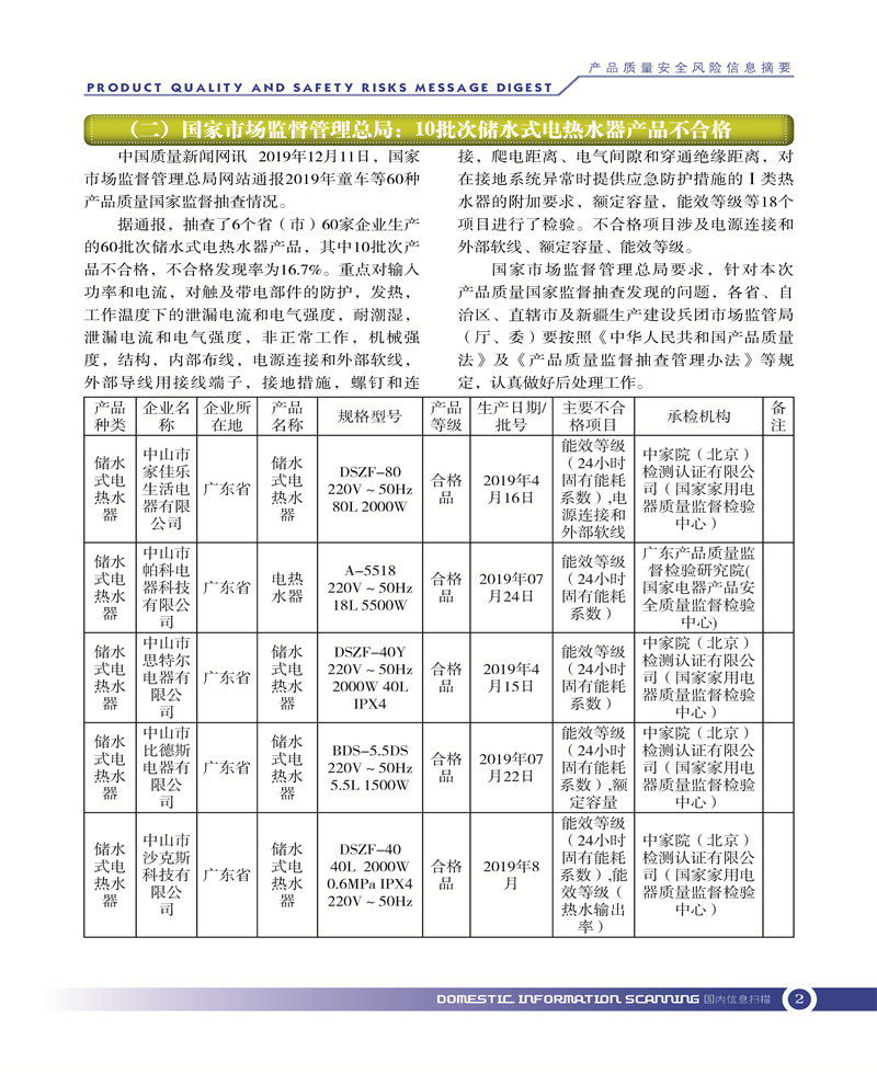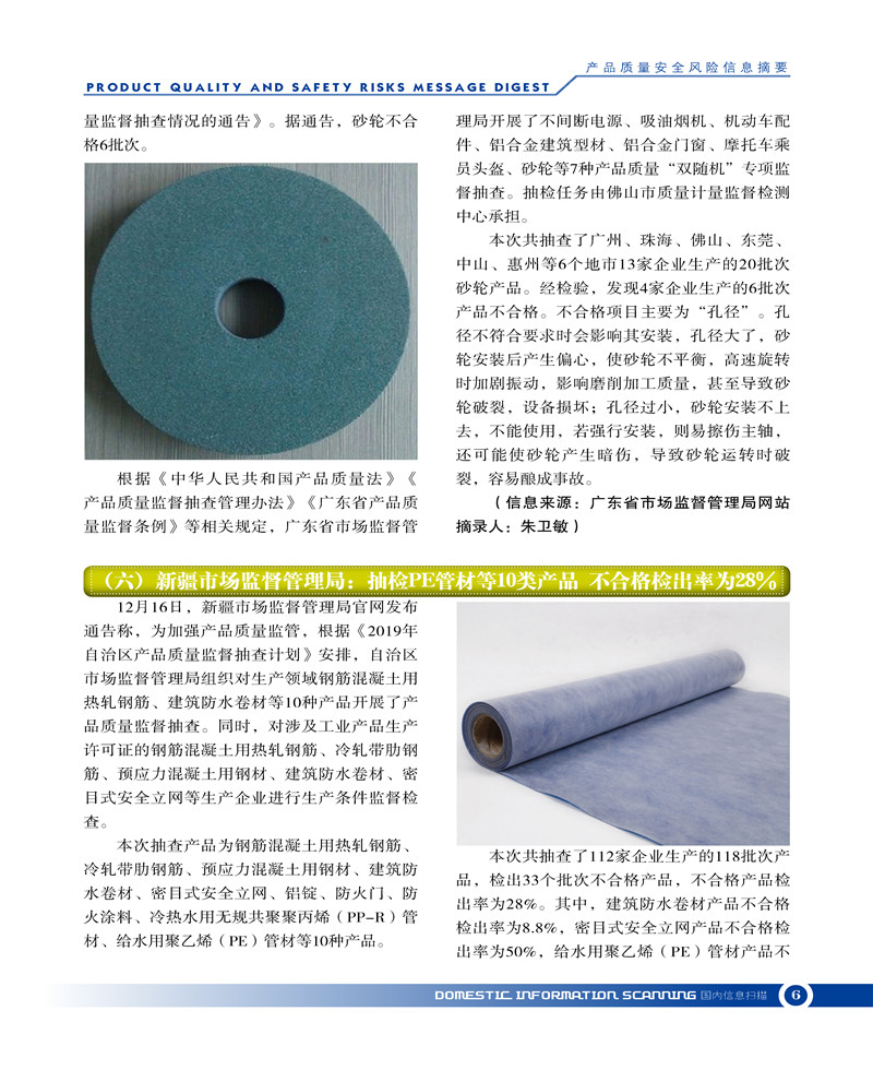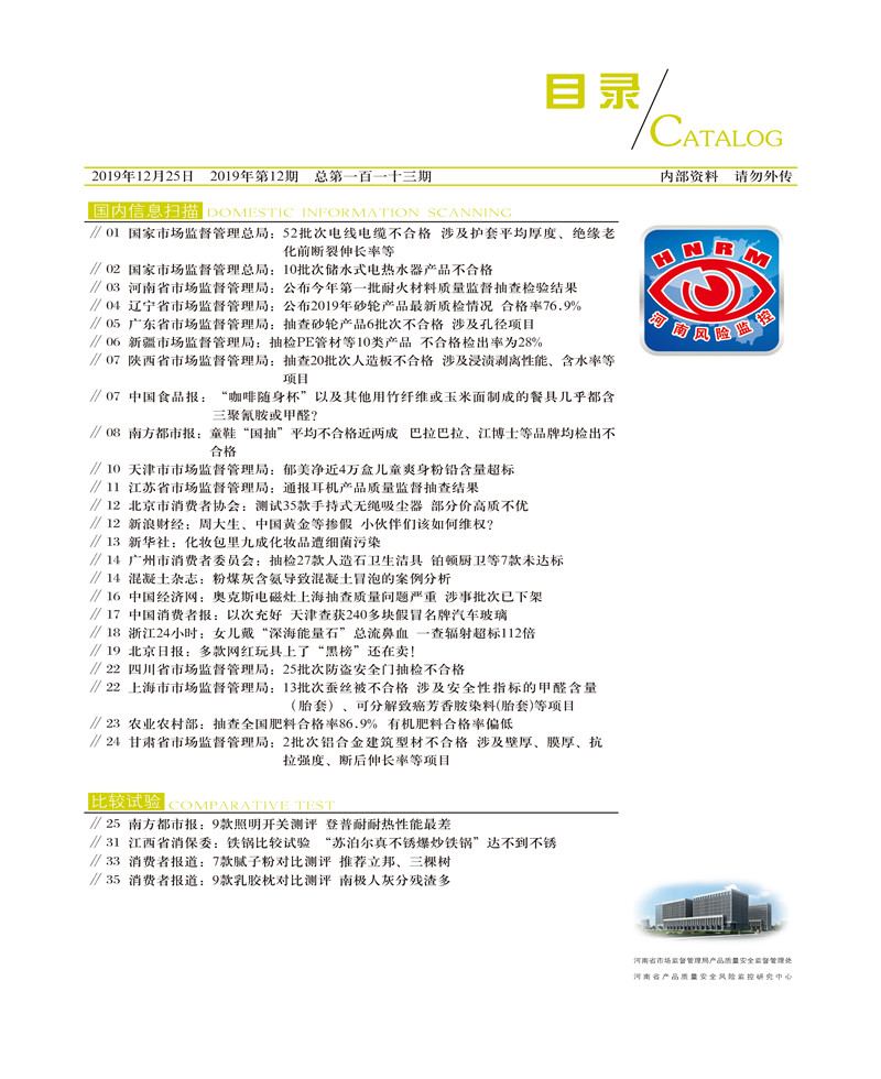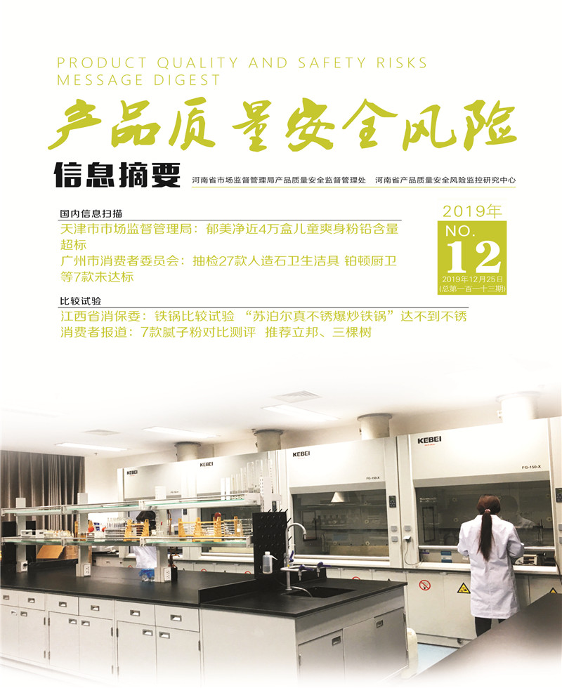 首页-- 风险监测月刊>--产品质量安全风险信息摘要2019.12.25