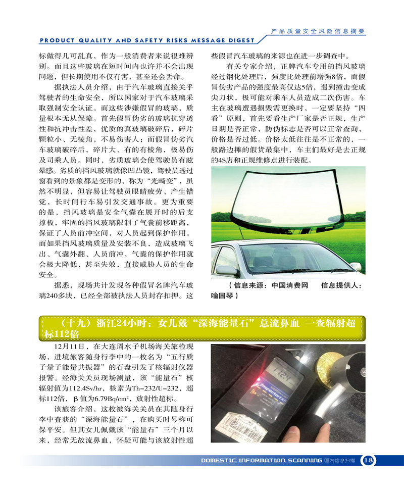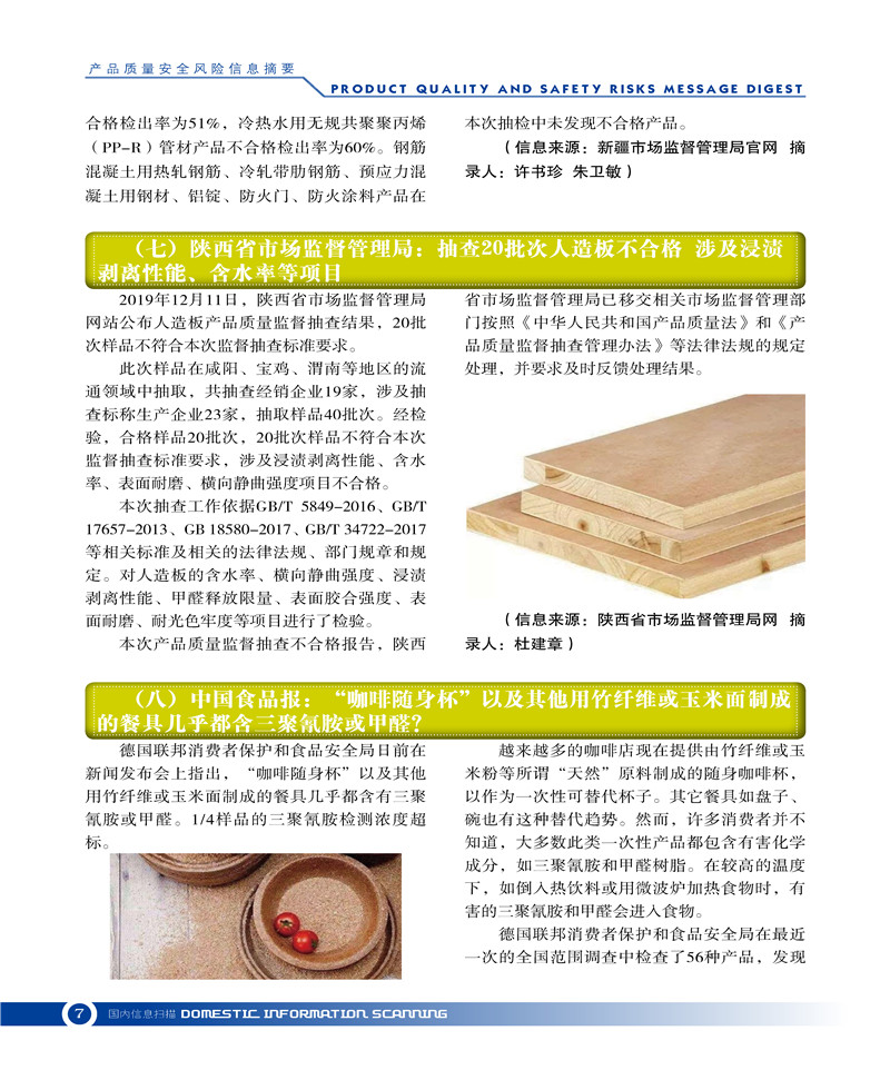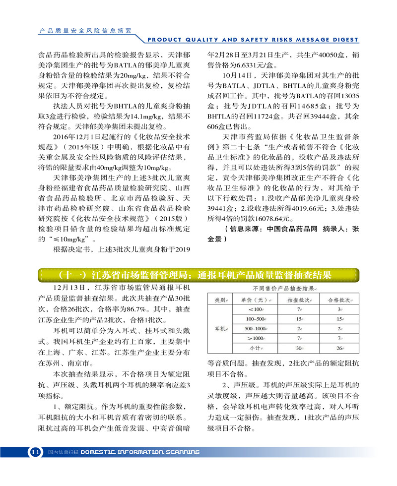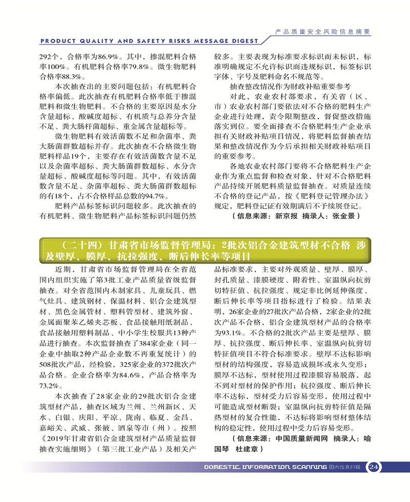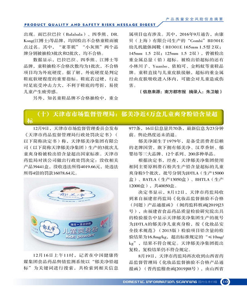 首页-- 风险监测月刊>--产品质量安全风险信息摘要2019.12.25