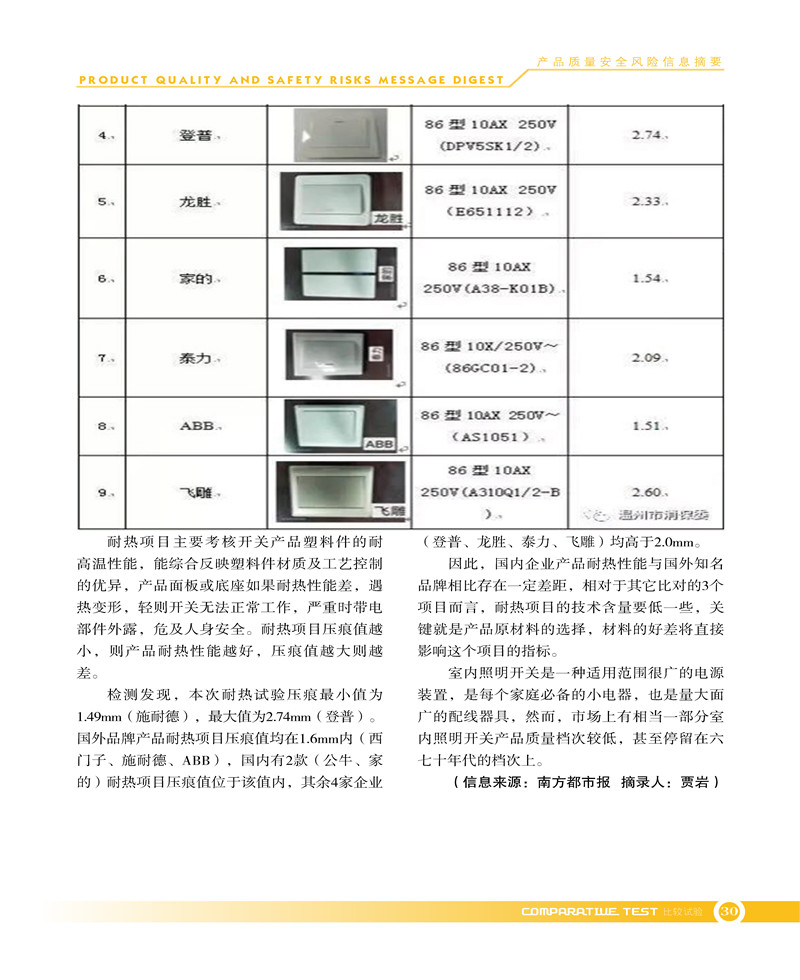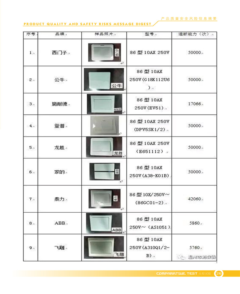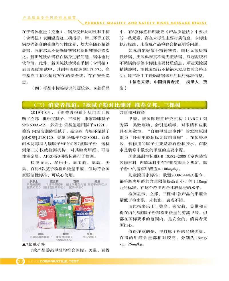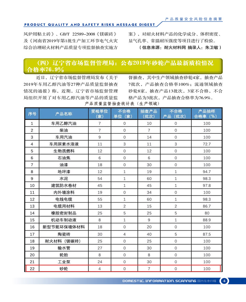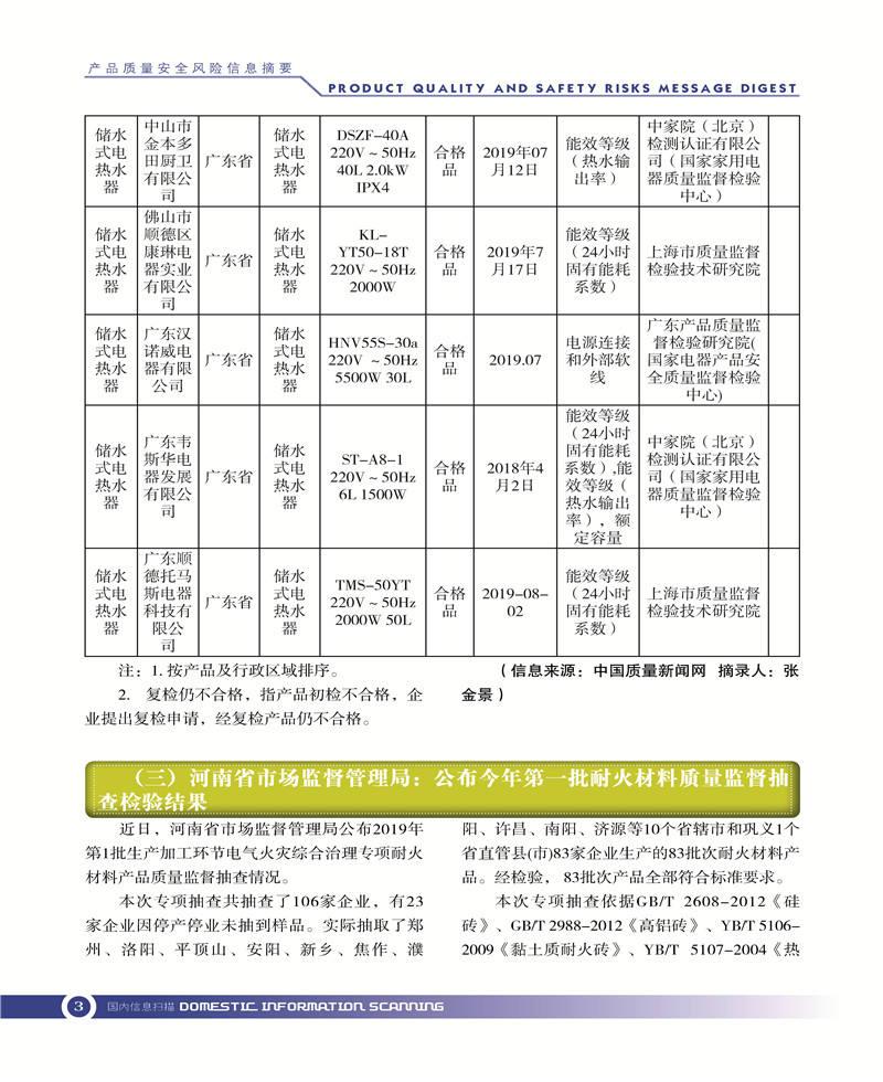 产品质量安全风险信息摘要2019.12.25 发布时间:2020年01月07日 信息来源:河南省产品质量监督检验院