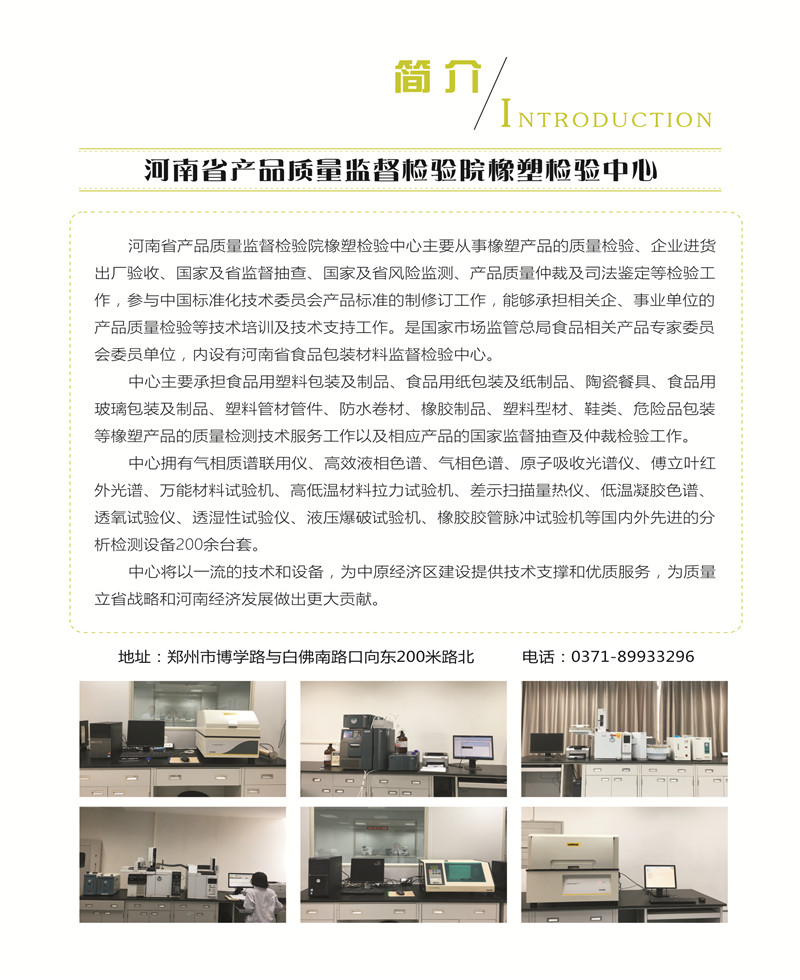 联系电话:博学路园区:石油化工、橡塑:0371-89933179; 涂料、建材:0371-89933178;轻工、机械、石陶:0371-89933187; 食品:0371-89933180;原阳检测家具中心:0373-5800185;东明路园区:电气:0371-63318986;珠宝:0371-63318193;业务大厅:0371-89933175