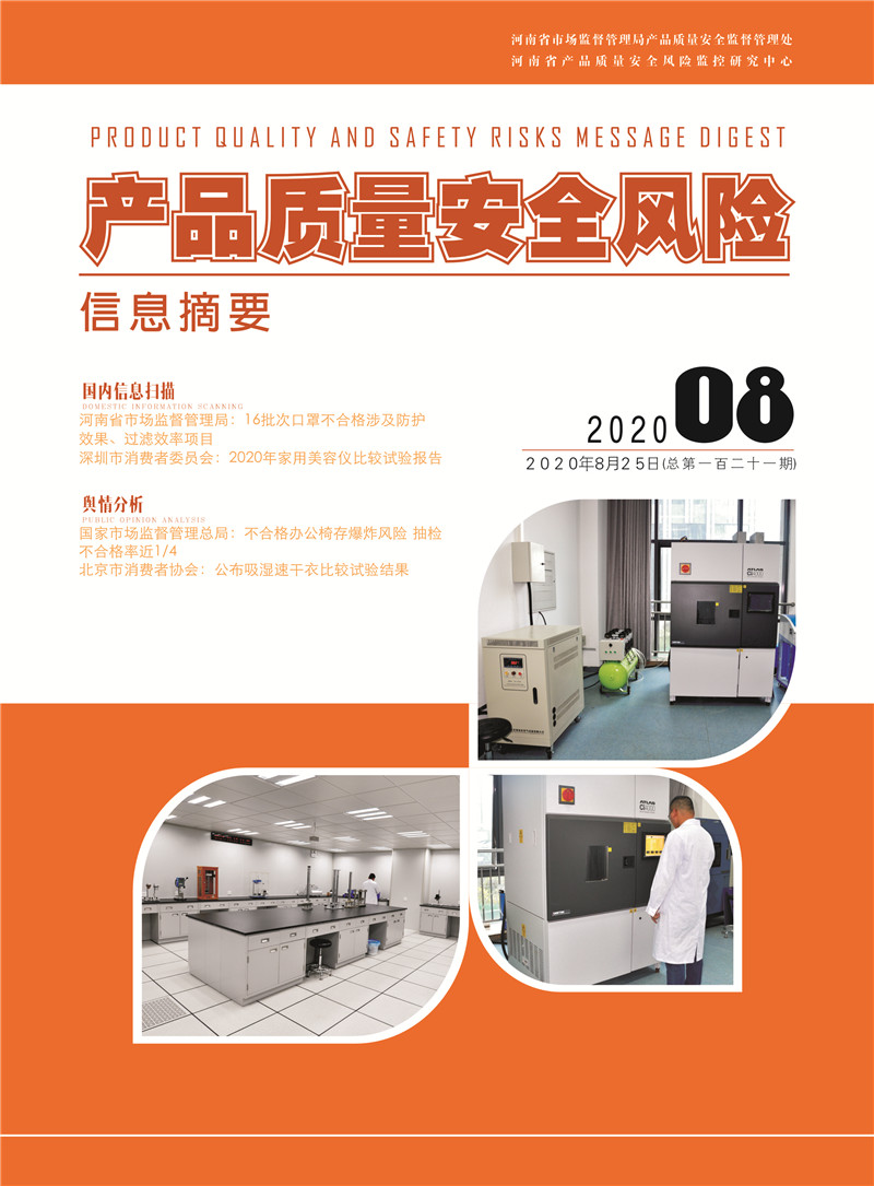 产品质量安全风险信息摘要2020.8.25 发布时间:2020年12月22日 信息来源:河南省产品质量监督检验院