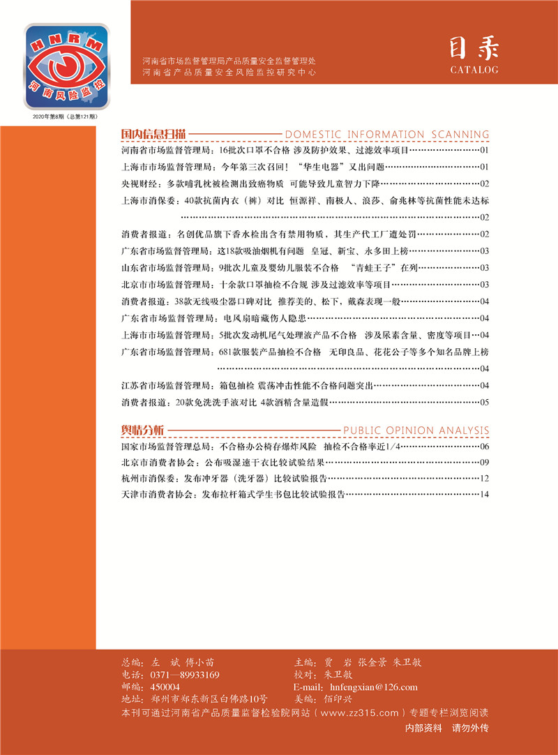 首页-- 风险监测月刊>--产品质量安全风险信息摘要2020.8.25