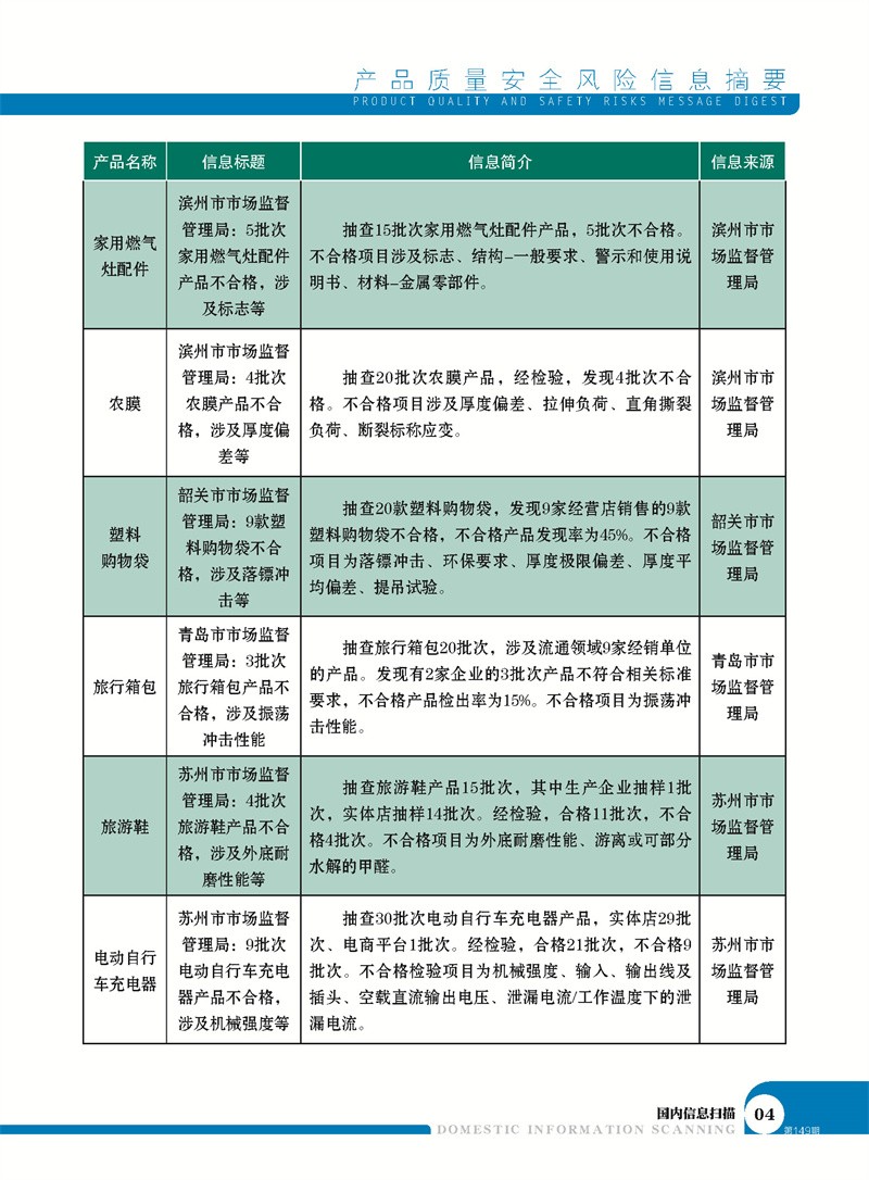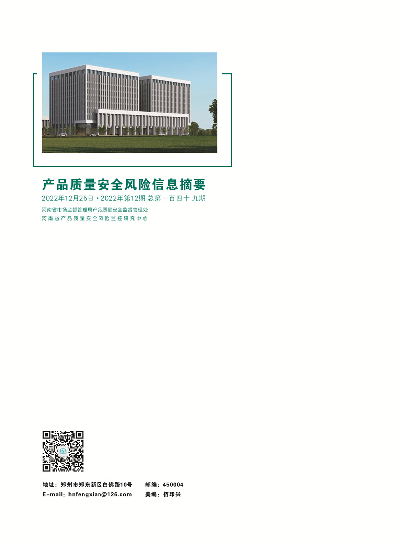 产品质量安全风险信息摘要2022.12.25 发布时间:2023年02月10日 信息来源:河南省产品质量监督检验院
