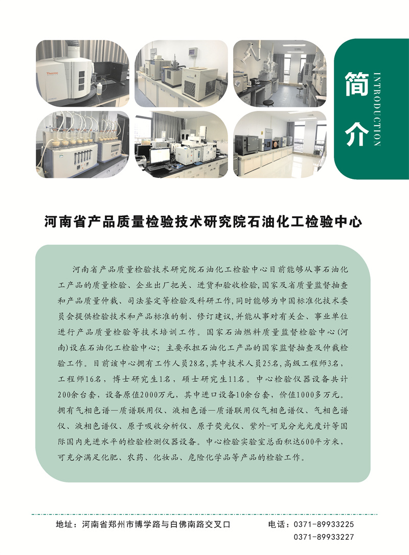 联系电话:博学路园区:石油化工、橡塑:0371-89933179; 涂料、建材:0371-89933178;轻工、机械、石陶:0371-89933187; 食品:0371-89933180;原阳检测家具中心:0373-5800185;东明路园区:电气:0371-63318986;珠宝:0371-63318193;业务大厅:0371-89933175