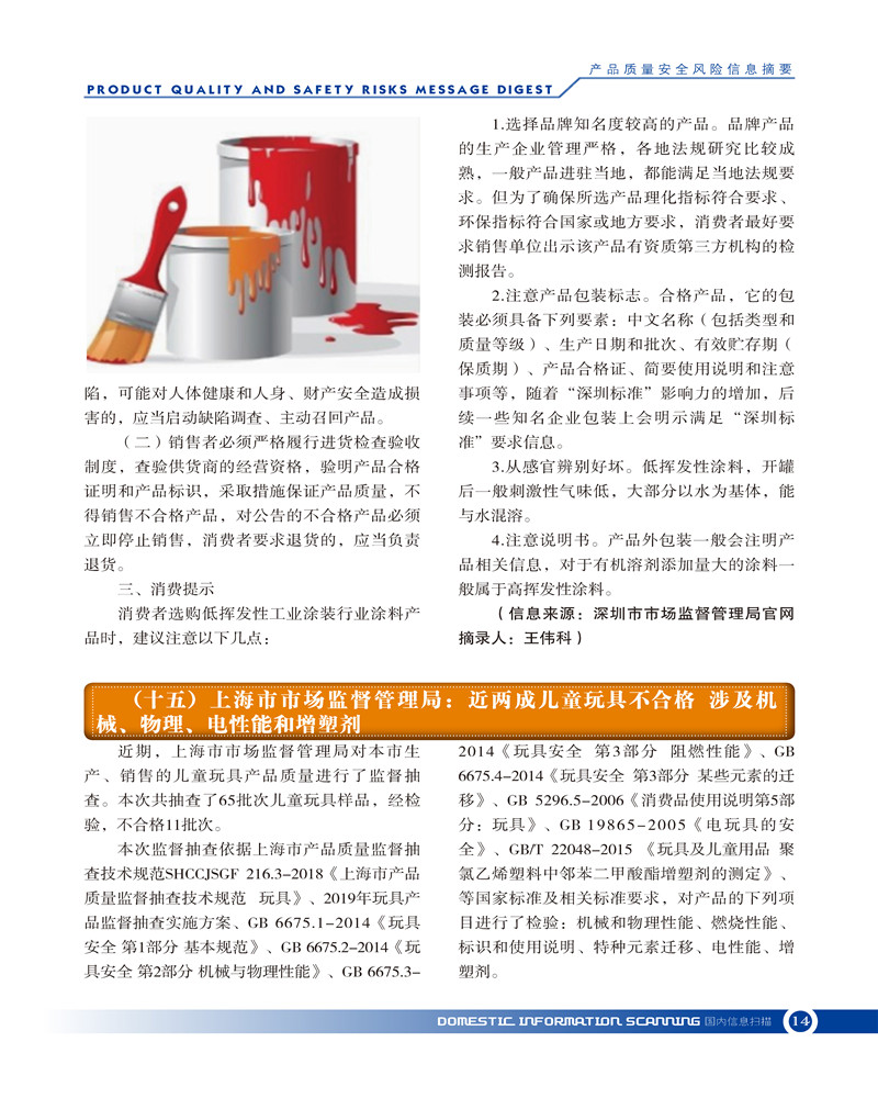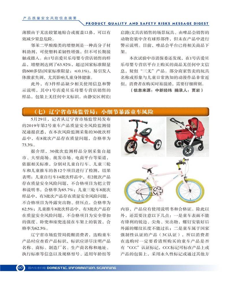 产品质量安全风险信息摘要2019.5.25 发布时间:2019年09月25日 信息来源:河南省产品质量监督检验院