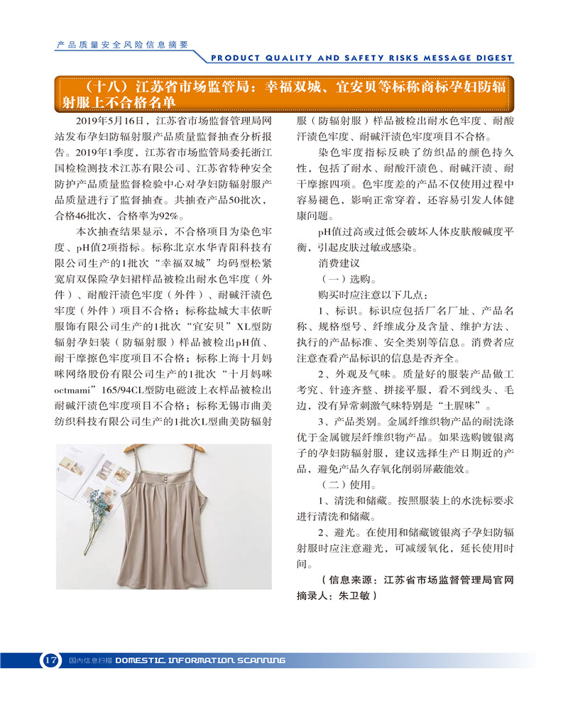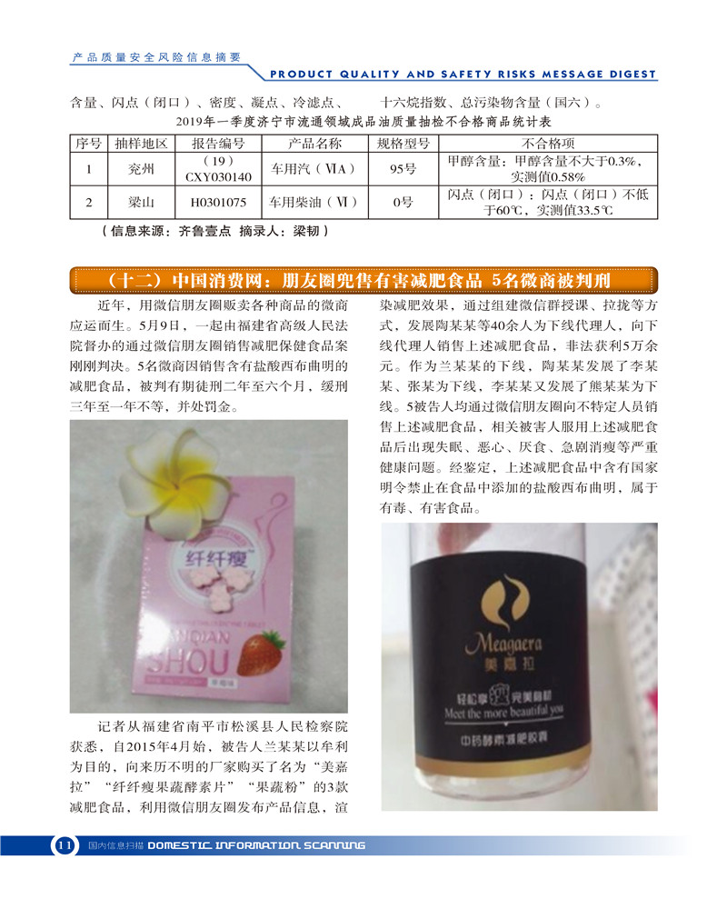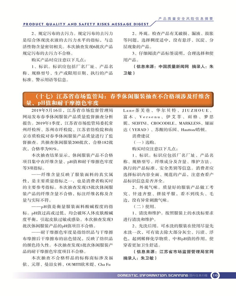 首页-- 风险监测月刊>--产品质量安全风险信息摘要2019.5.25